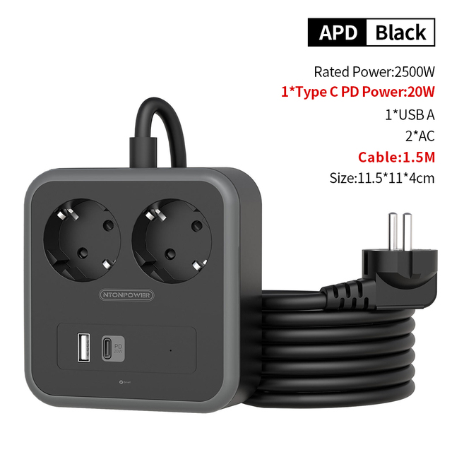 3. Умное зарядное устройство USB:Удлинитель с 2 интеллектуальными USB может обеспечить некоторые удобства для зарядки устройства. Интеллектуальный USB-порт NTONPOWER может автоматически обнаруживать зарядные устройства и обеспечивать подходящий ток для различных устройств, а вашу электронику можно заряжать быстро и безопасно.