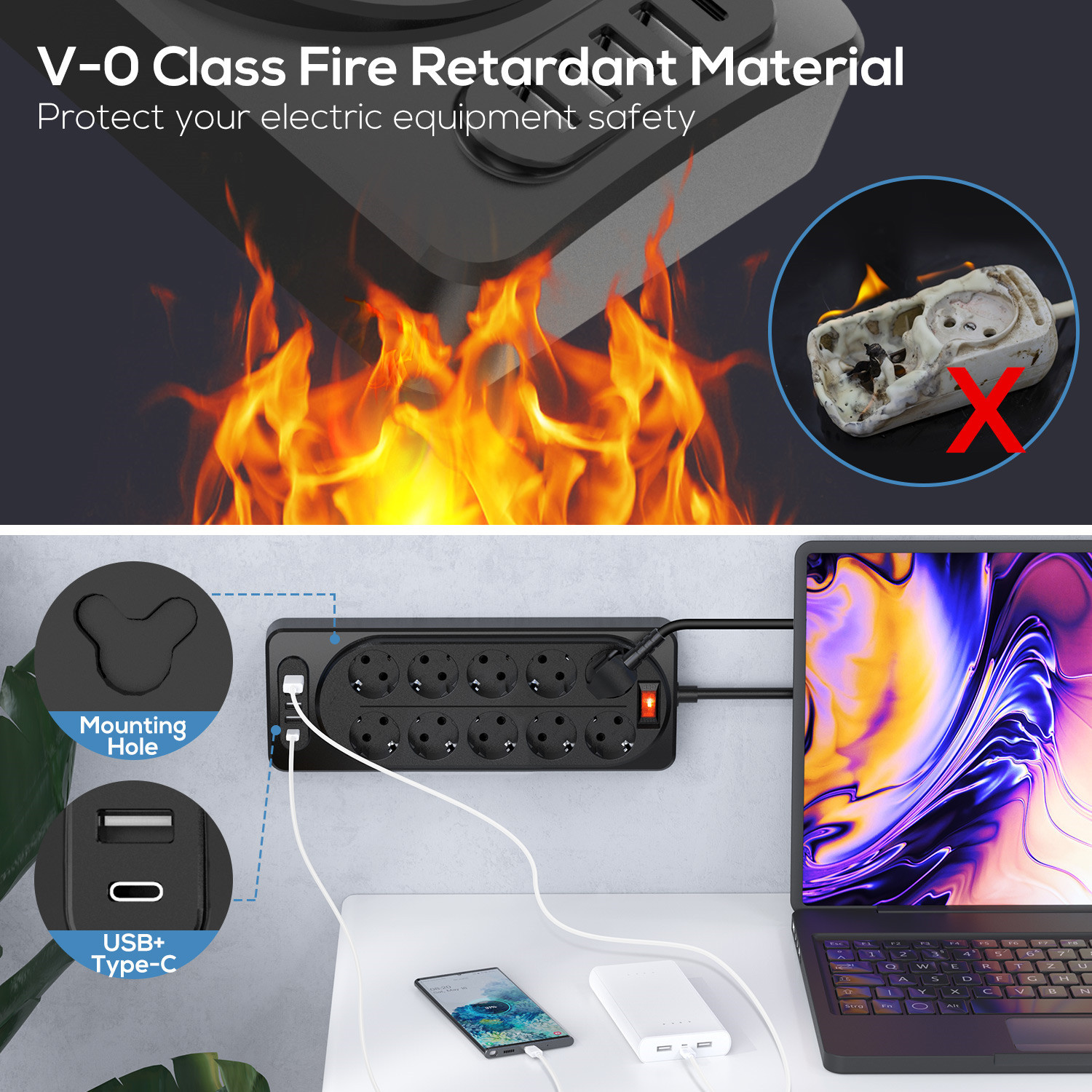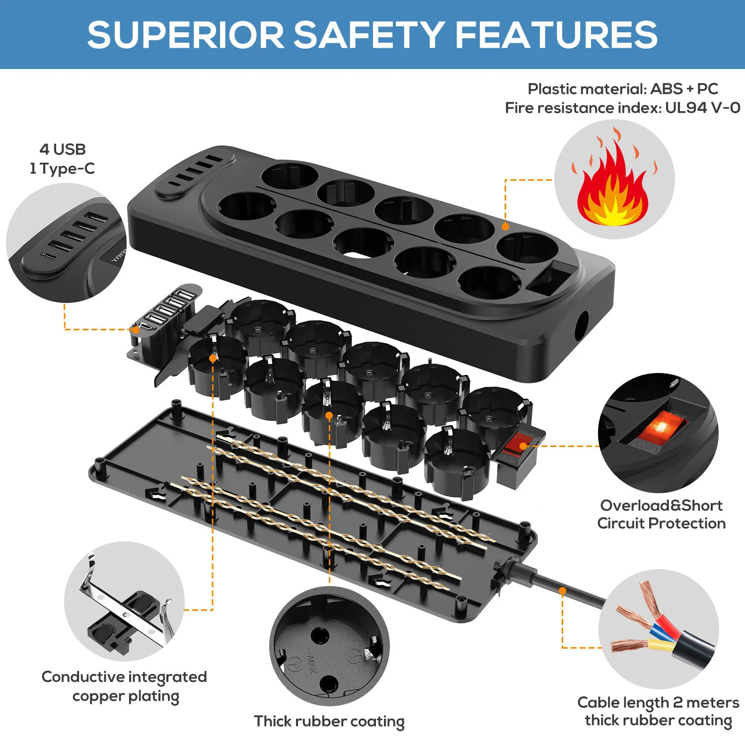 ★Многофункциональная Защита: лента питания BEVA с usb-портами для зарядки соответствует сертификатам CE / RoHS, а также может обеспечить перегрузку, перегрузки по току, короткое замыкание, защита детей и защита от перегрева для обеспечения безопасности подключенного оборудования. Огнестойкий материал PC 850 ℃ эффективно устраняет скрытые опасности