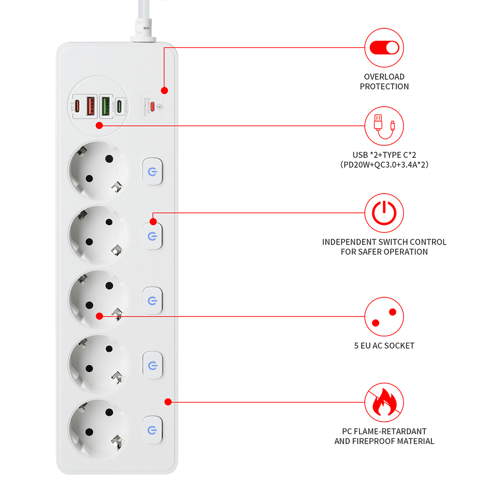 4. Автоматическая защита от отключения питания, когда общая мощность подключенного оборудования превышает 3250W, он включает автоматическую защиту от отключения питания, чтобы защитить ваше оборудование от повреждений