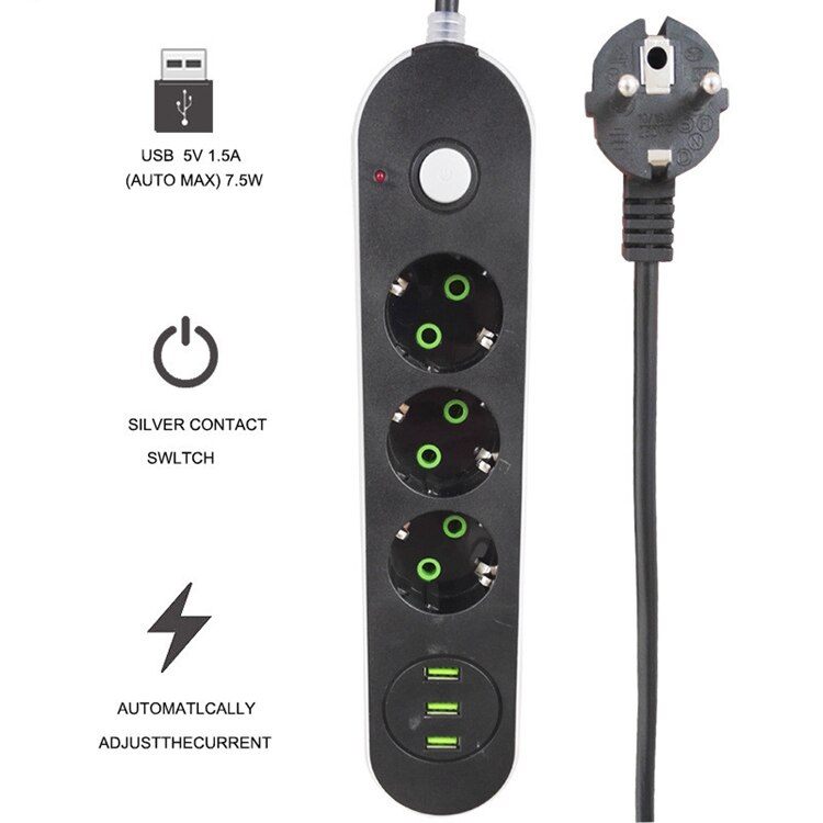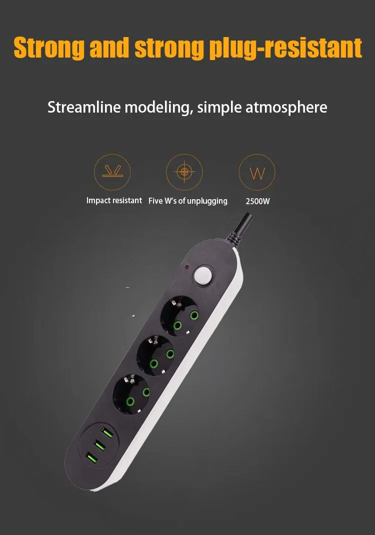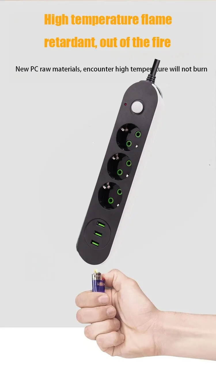 • 3 порта USB для зарядки :Заряжайте до 3 устройств одновременно с помощью этого удлинителя, экономя время и силы.