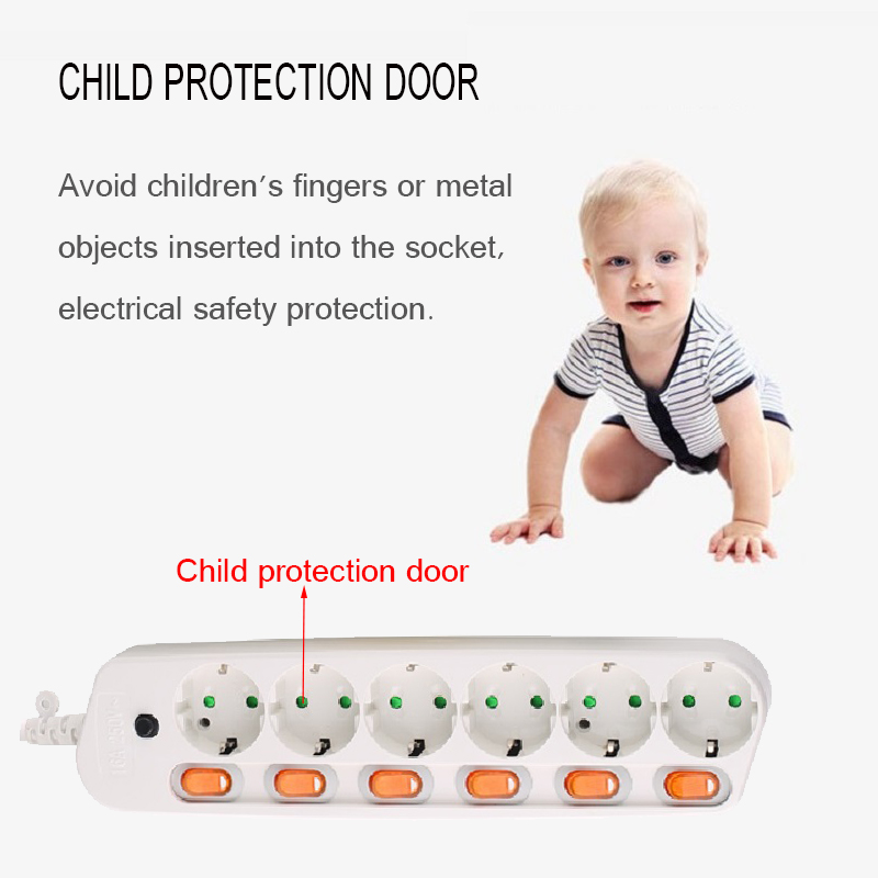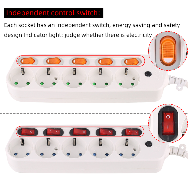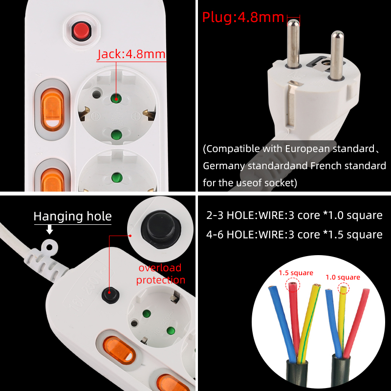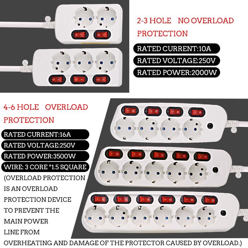 4-6 отверстий: 16A 3500 Вт Провод 3-жильный * 1,5 квадратная защита от перегрузки