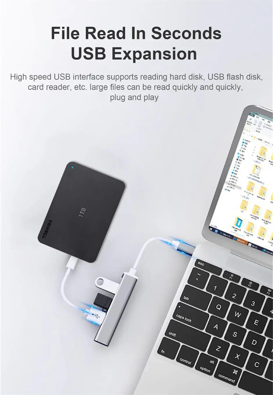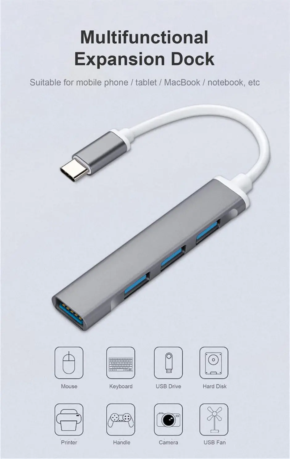 Удлинитель типа C Концентратор Док-станция USB C Разветвитель для компьютера от одного до четырех USB 3,0