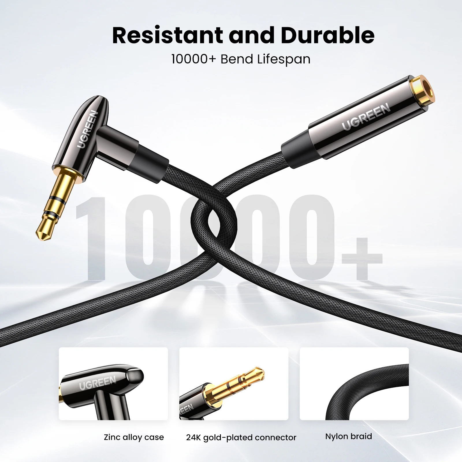 Устойчивая к трению и устойчивая к изгибу оболочка в нейлоновой оплетке делает этот Удлинительный кабель для наушников достаточно прочным, чтобы выдерживать любой скручивание, перетягивание и спутывание.