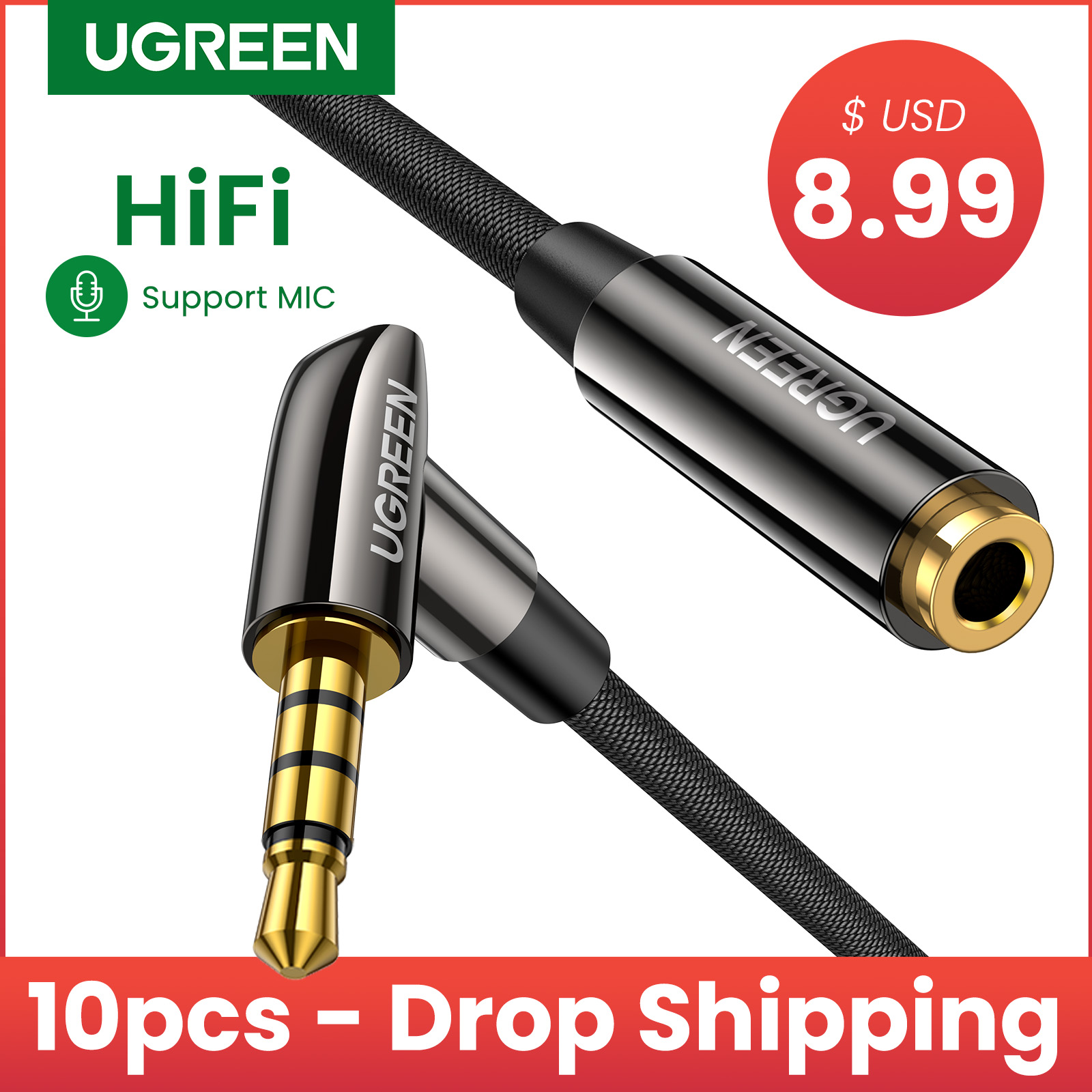4-полюсный Удлинительный кабель 3,5 мм:Удлинительный кабель для наушников UGREEN оснащен 4-полюсным разъемом 3,5 мм и штекером, а также поддерживает функцию микрофона, что позволяет использовать функцию микрофона игровых гарнитур или увеличивает расстояние между внешними 3,5 мм.МикрофонИ ноутбук/настольный компьютер/смартфон. Этот Удлинительный кабель с микрофонным разъемом 3,5 мм идеально подходит для видеозвонков, онлайн-встреч и командных игр.