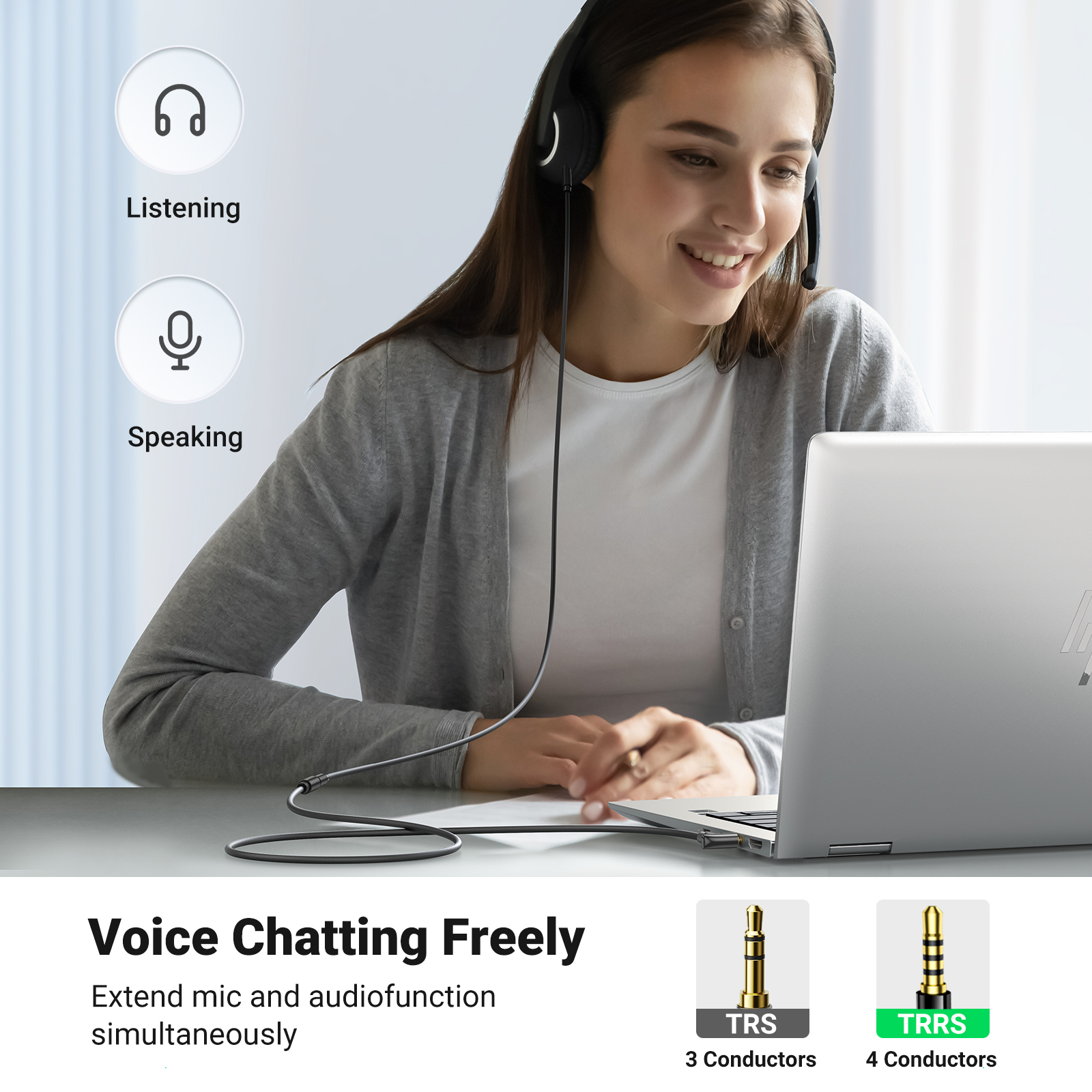 Удлинительный кабель AUX-шнура UGREEN между мужчинами и женщинами оснащен 4-полюсным разъемом 3,5 мм и штекером, чтобы сделать доступной функцию микрофона, что позволяет использовать функцию микрофона игровых гарнитур или увеличивает расстояние до внешнего микрофона 3,5 мм. Удлинительный кабель с микрофонным разъемом 3,5 мм идеально подходит для видеозвонков, онлайн-встреч и командного игрового процесса.