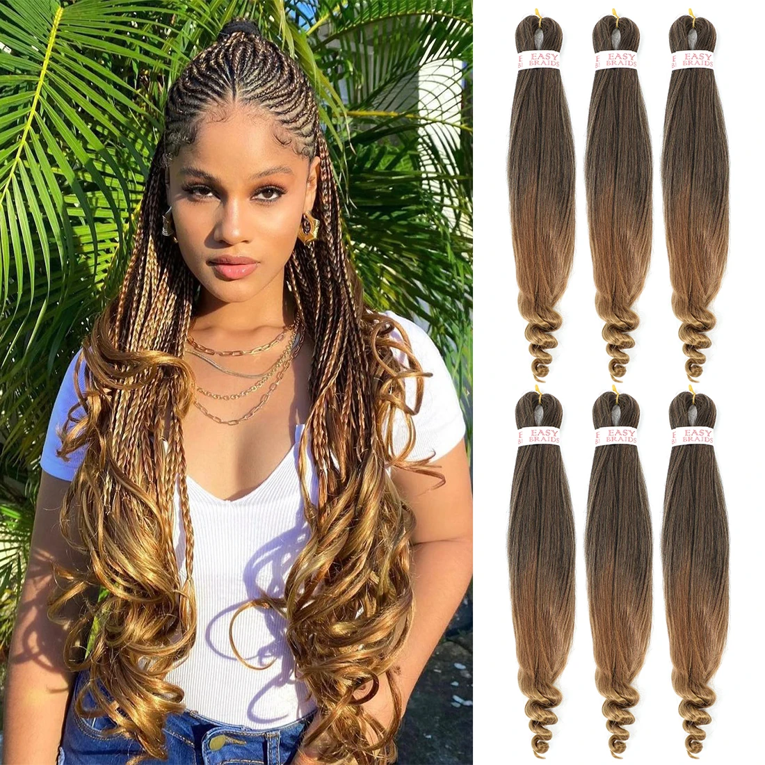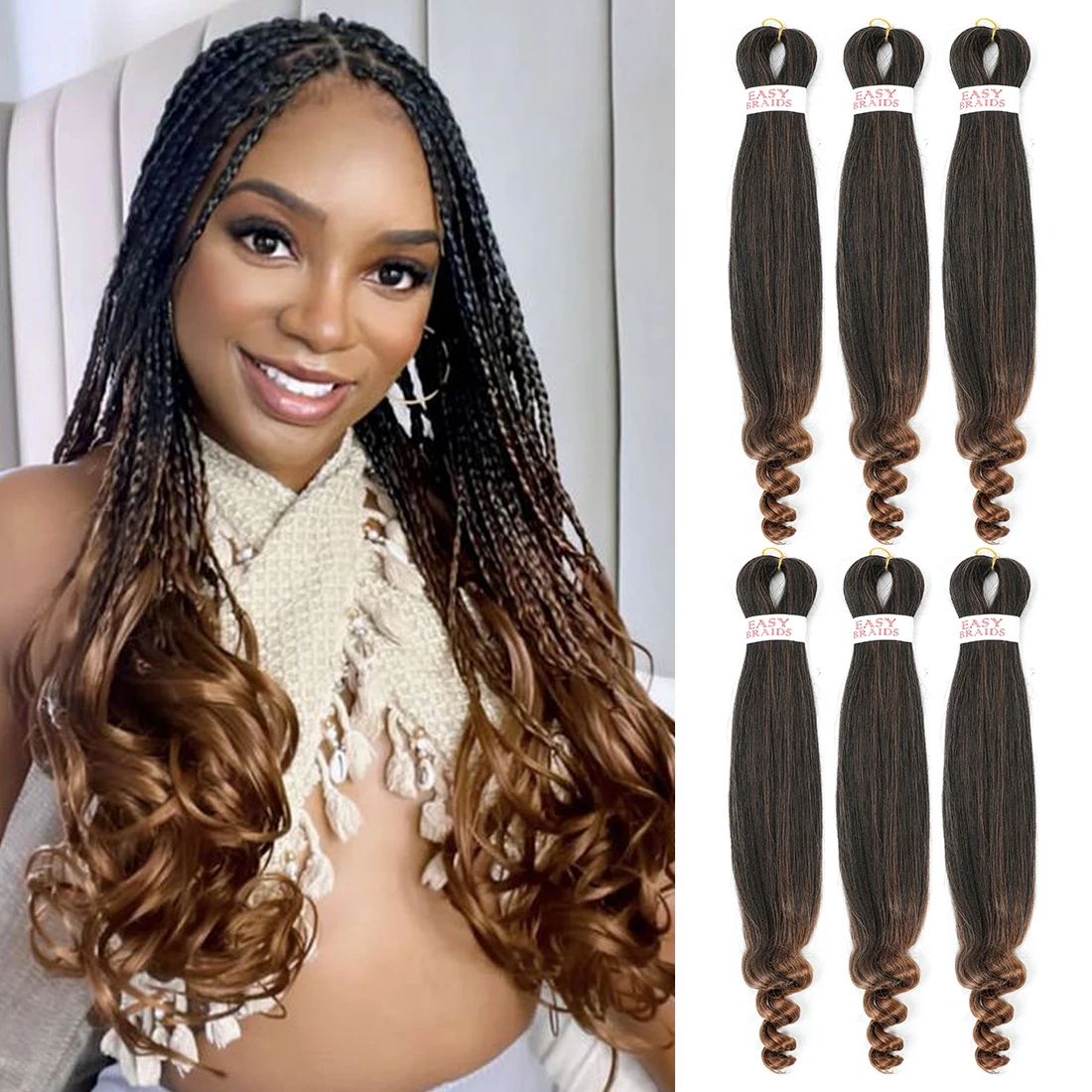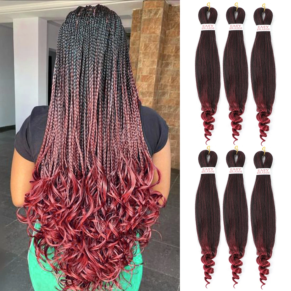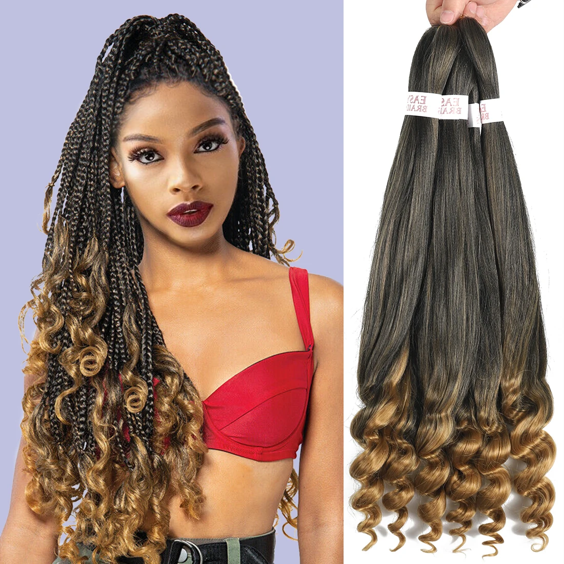Удлинители, предварительно растягивающиеся плетеные волосы, французские кудрявые вязаные волосы, синтетические волосы, плетеные волосы, легкая в горячей воде, предварительно растягивающиеся