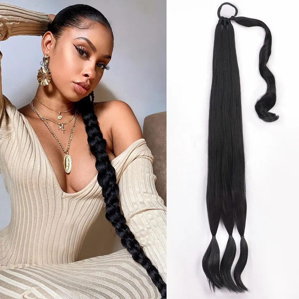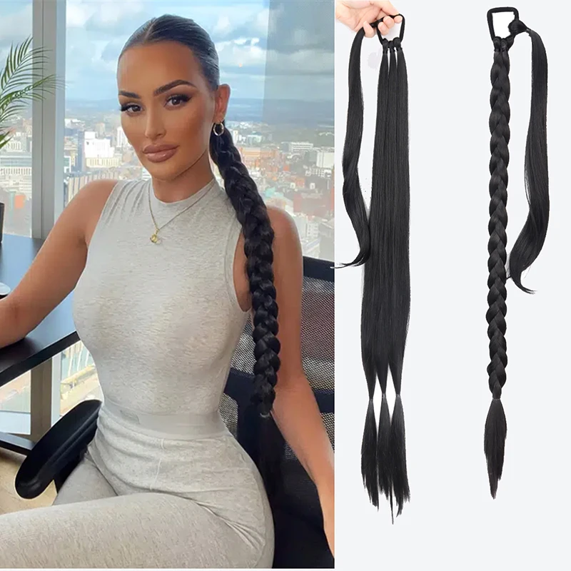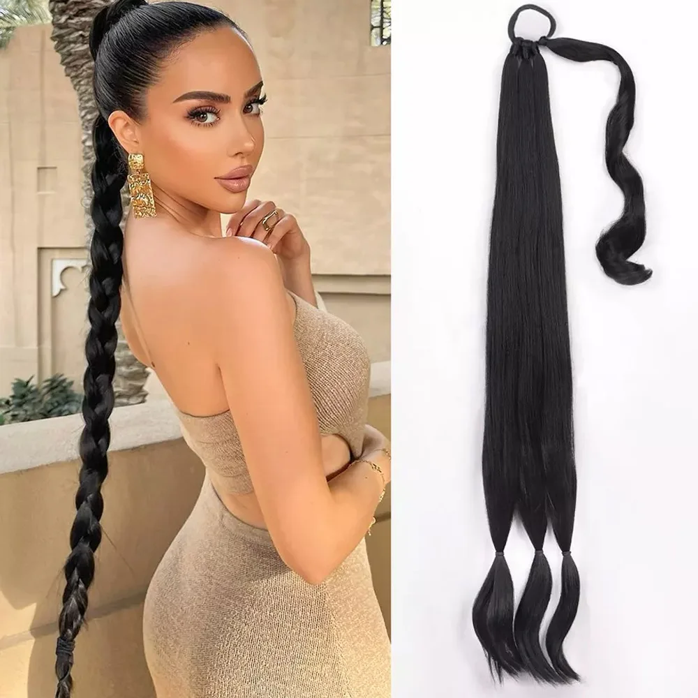 Удлинители волос для конского хвоста, плетеные синтетические натуральные косички для хвоста, Черные Светлые волосы, 30 дюймов, резинка