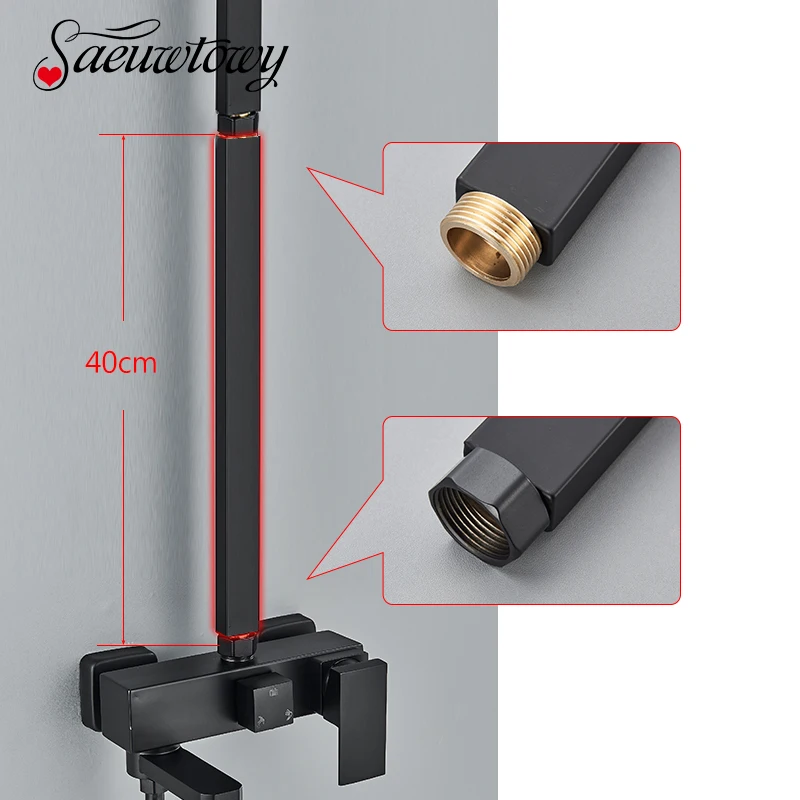 Круглая/квадратная удлинительная трубка 30/40 см, смеситель для душа, дополнительная удлинительная трубка, черный хром цвет, универсальный интерфейс, удлинительные трубки