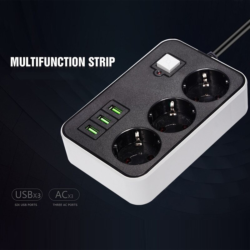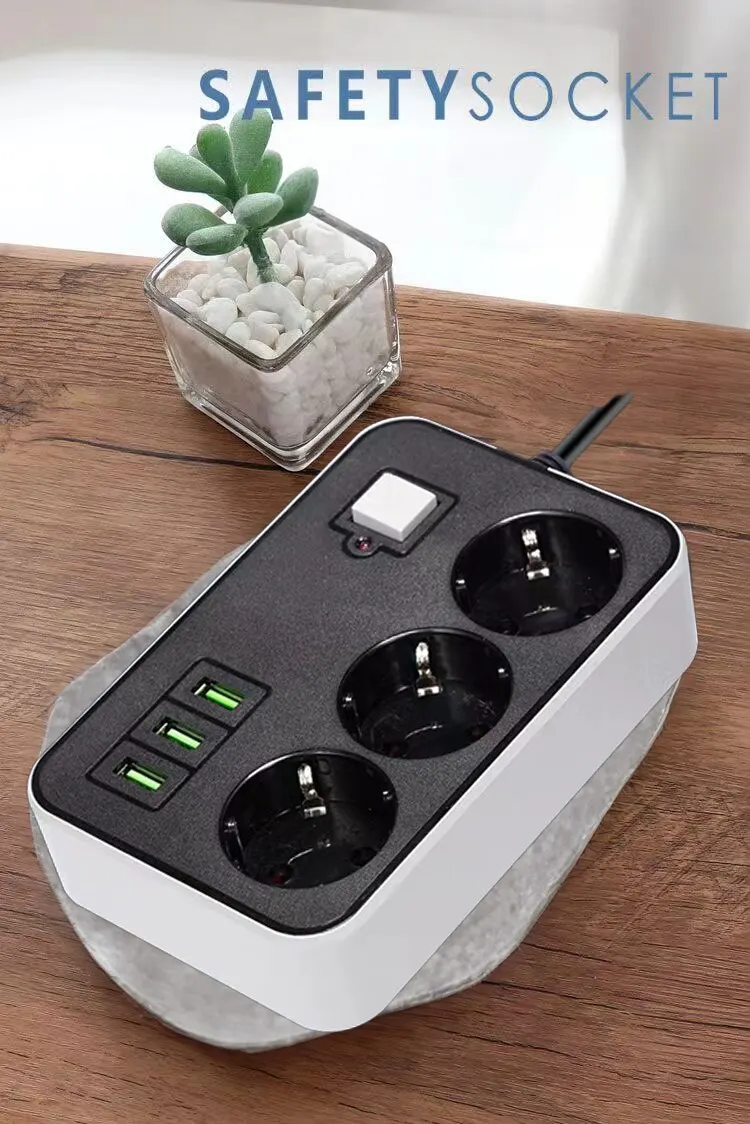 • 3 розетки и 3 порта USB:Заряжайте несколько устройств одновременно с помощью 3 розеток и 3 портов USB.