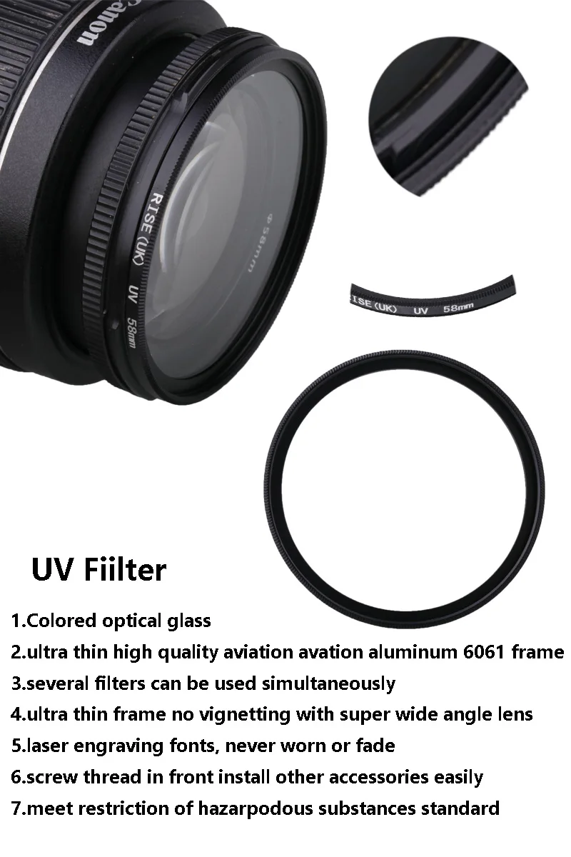 УФ-фильтр RISE(UK) 37/39/40.5/43/46/49/52/55/58/62/67/72/77/82/95/105 мм защитный фильтр для объектива canon nikon