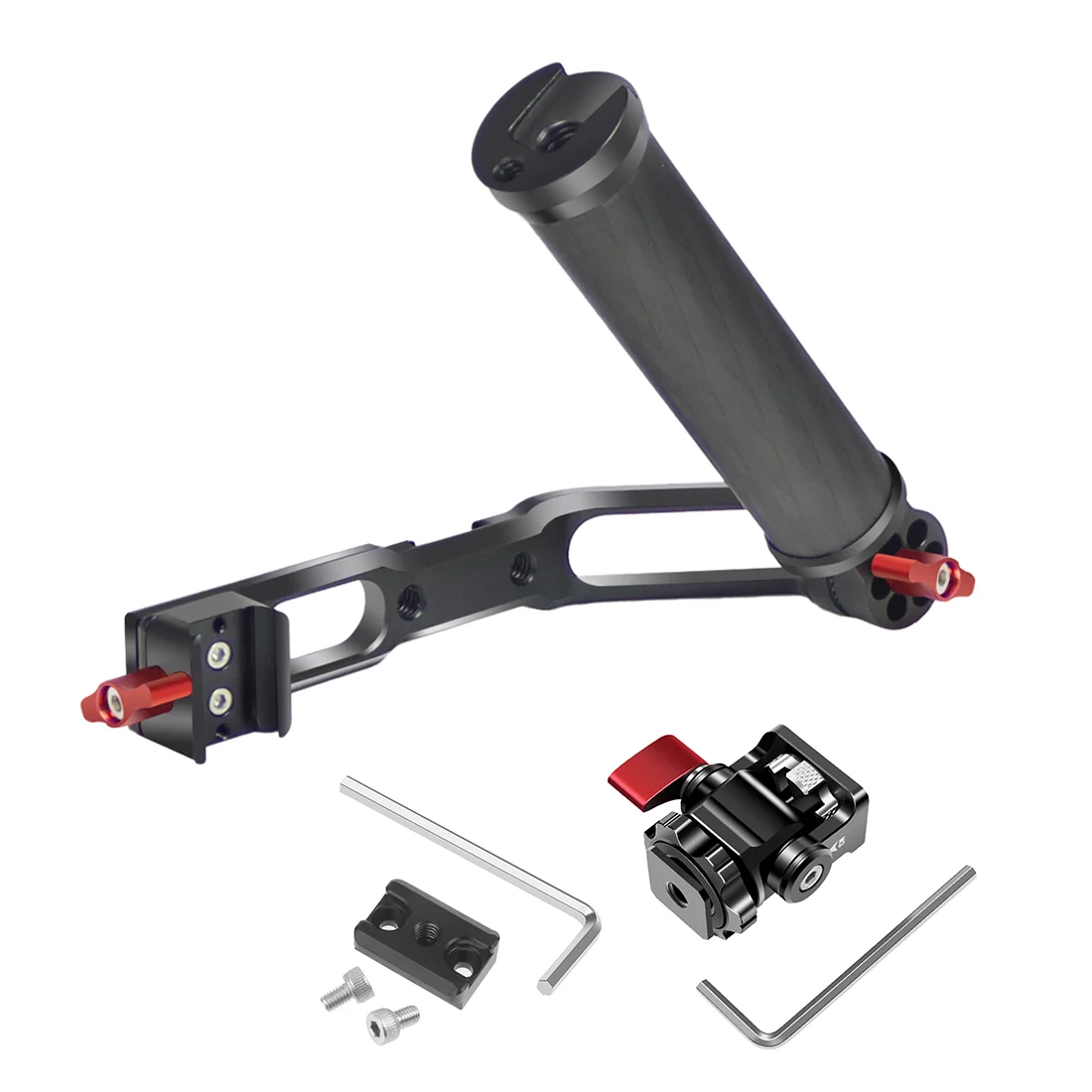 Разработан с интерфейсом 1/4 дюйма и холодным башмаком для быстрого монтажа монитора, микрофона и светодиодной лампы.