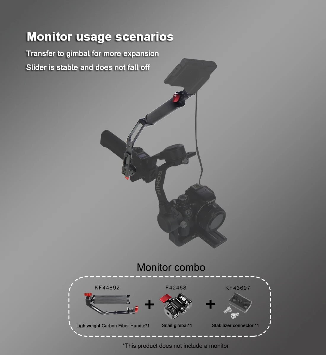 Комбинированный набор с одной ручкой с 1x рельсовым креплением + держатель монитора с шаровой головкой для стабилизатора DJI Ronin RS2 RSC2