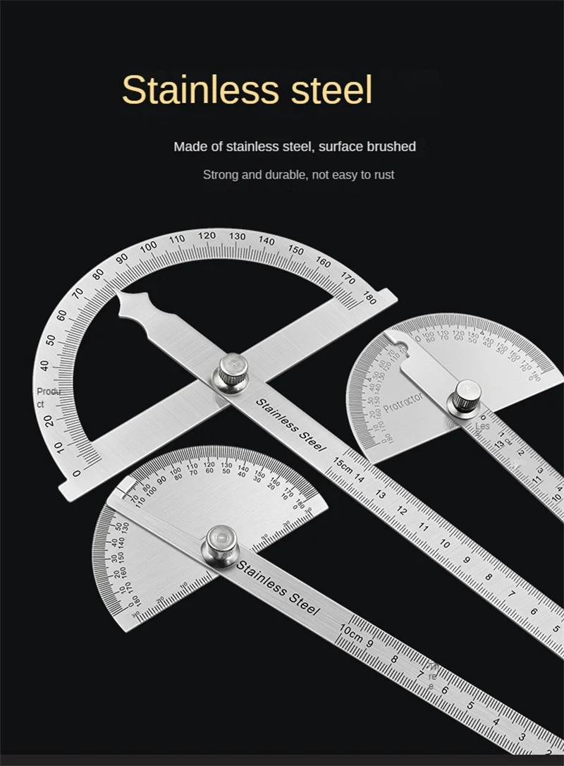 Угломер 180 градусов, металлический транспортир, Гониометр, угловая линейка, Деревообрабатывающие инструменты из нержавеющей стали, вращающаяся измерительная линейка 100/150