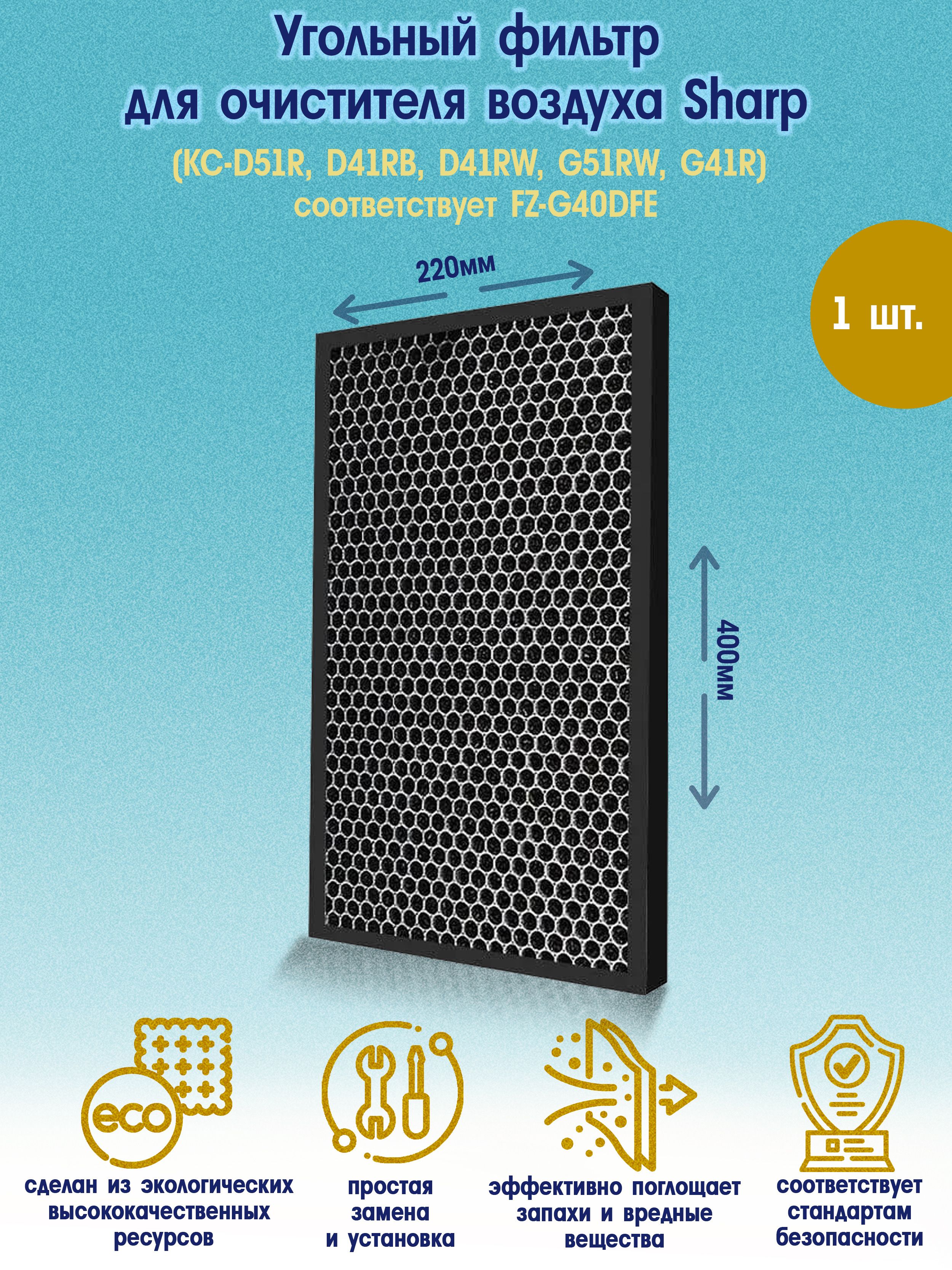 Угольный фильтр для очистителя воздуха Sharp (KC-D51R, D41RB, D41RW, G51RW, G41R) соответствует FZ-G40DFE, 1 шт, прочный, 400х220 мм