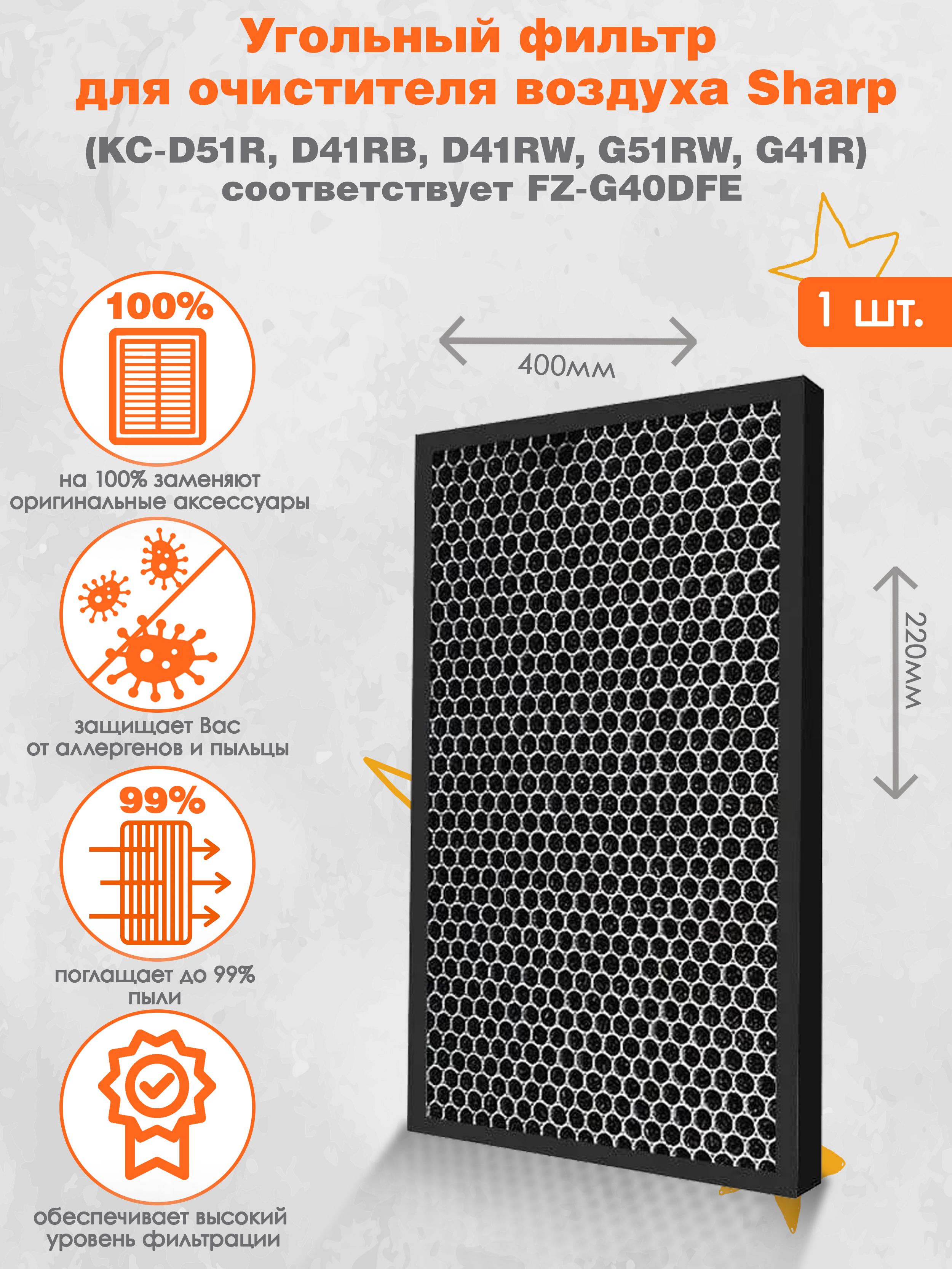 Угольный фильтр для очистителя воздуха Sharp (KC-D51R, D41RB, D41RW, G51RW, G41R) соответствует FZ-G40DFE, 1 шт, прочный, 400х220 мм
