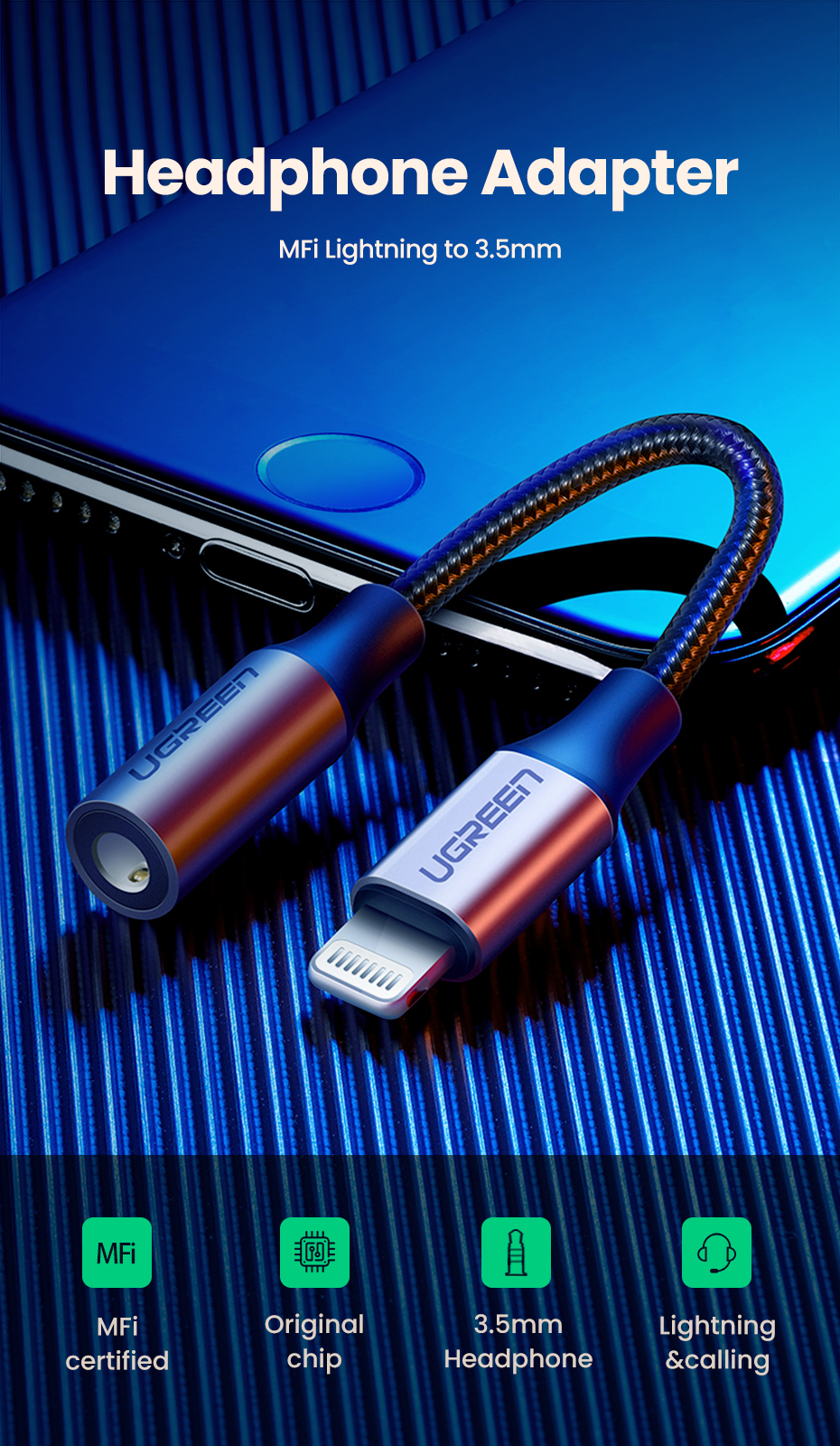 UGREEN адаптер для iPhone MFi DAC Lightning на 3,5 мм адаптер для наушников для iPhone 12 11 Pro max xr Aux кабель аксессуары для телефонов