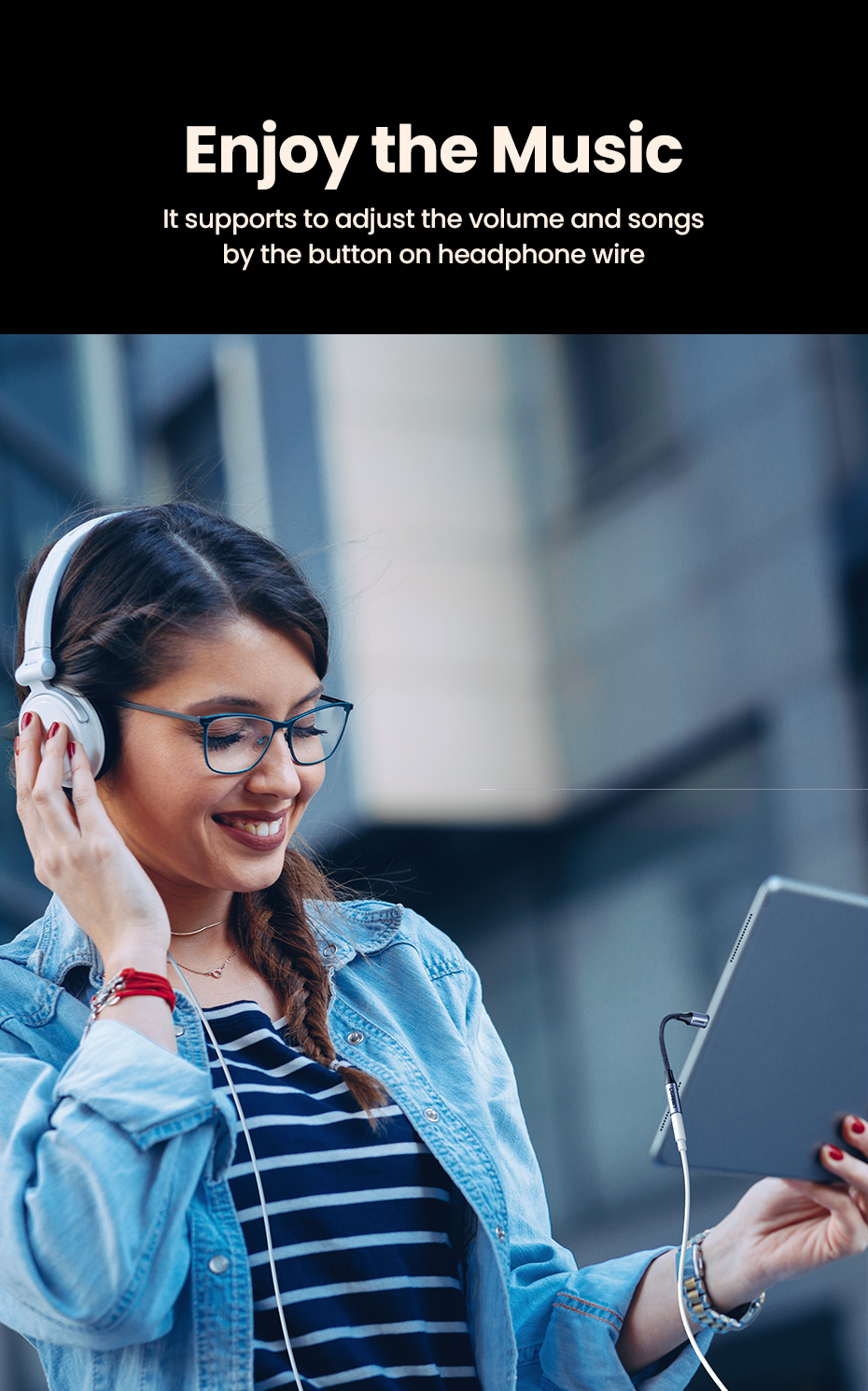 Он поддерживает регулировку громкости и песен с помощью кнопки на проводе наушников.