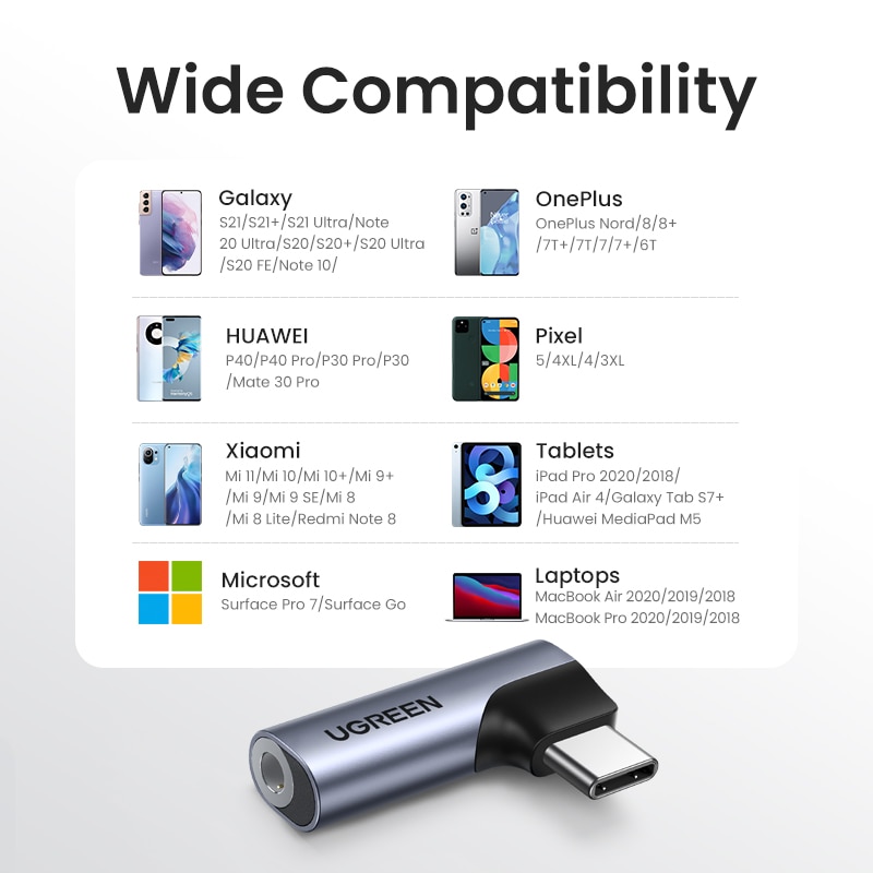 • Высококачественный адаптер для наушников USB C: аудиоадаптер UGREEN USB C-3,5 мм добавляет дополнительный разъем для телефонов/планшетов/ноутбуков типа C и позволяет им воспроизводить музыку на вспомогательных аудиоустройствах, таких как наушники, автомобильное радио, динамик, или звуковая панель. Он также поддерживает микрофон и встроенное управление, что делает его удобным для совершения звонков и управления списком воспроизведения музыки.
