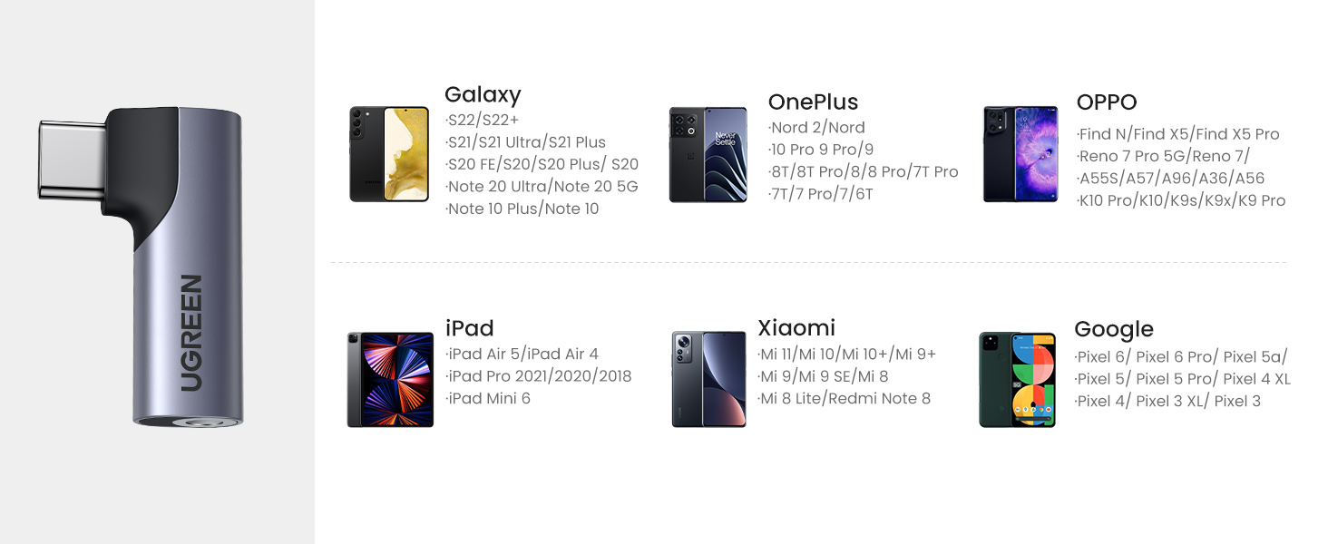 • Более Широкая совместимость: с усовершенствованной микросхемой ЦАП адаптер USB C-Aux, совместимый с iPad Mini 6, iPad Pro 2021, iPad Air 4/Air 5th 10,9 дюйма, samsung Galaxy S22/S22 Ultra/S22 +/S21 Ultra/S21 +/S21/S20 FE/S20 Plus/S20 Ultra/S10 Lite/Note20/Z Flip 3/, google Pixel 6/6 Pro/5A/5/5 Pro, Nord 2/9 Pro/8T/7, MacBook Pro и большинство устройств Type-C