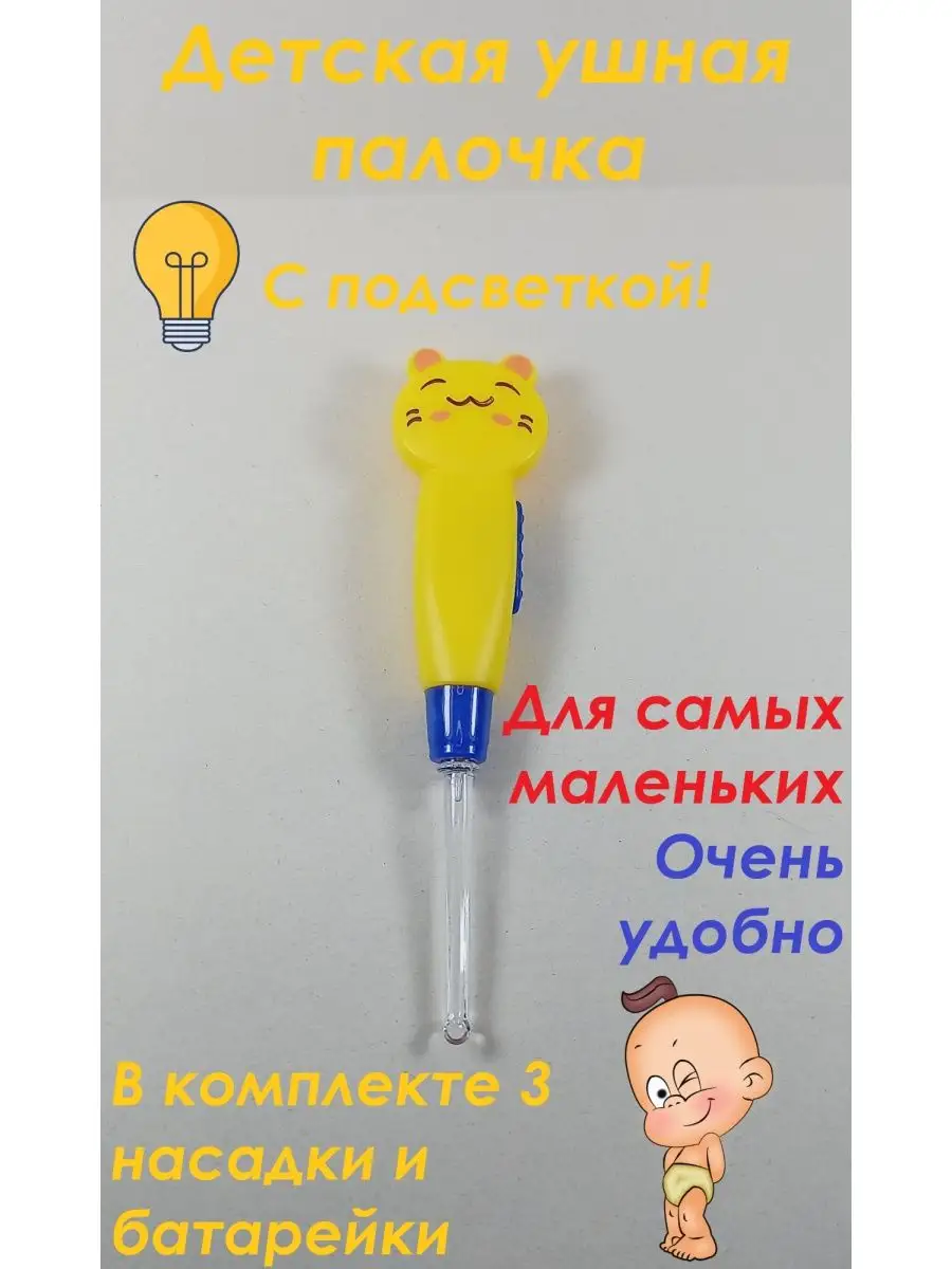 Комплектация Ручка ухочистки с фонариков- 1шт; насадка- 3шт