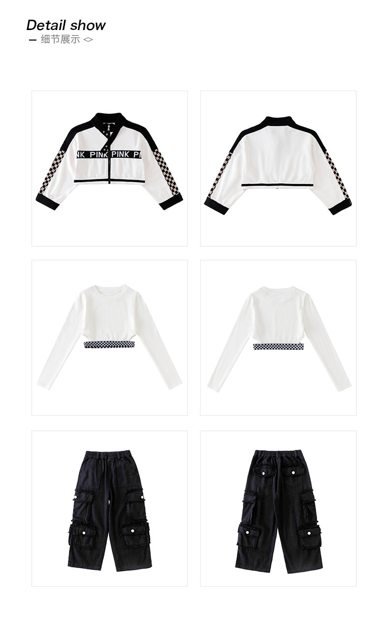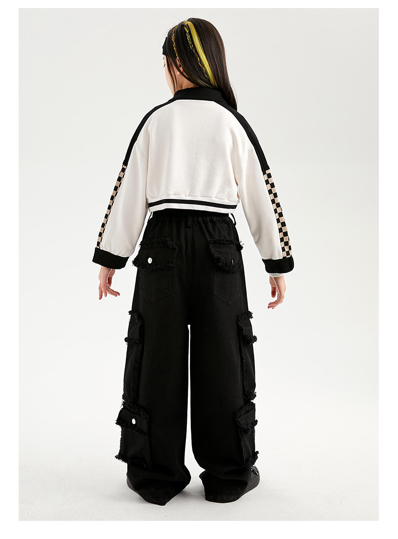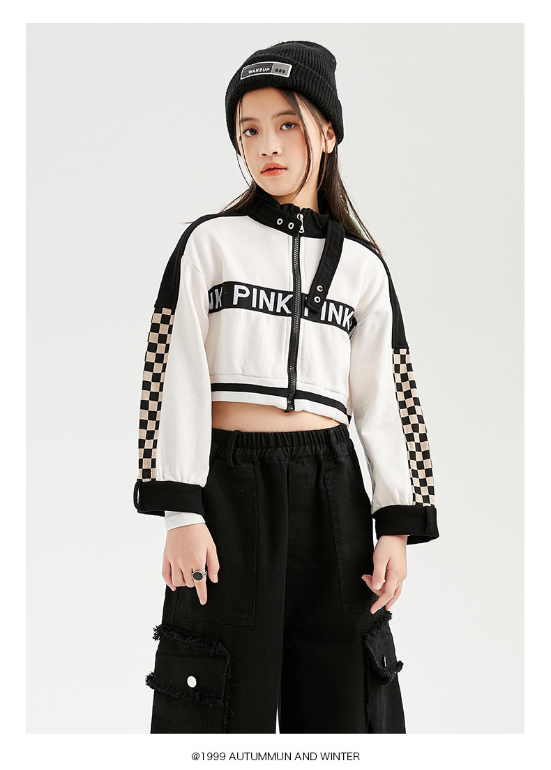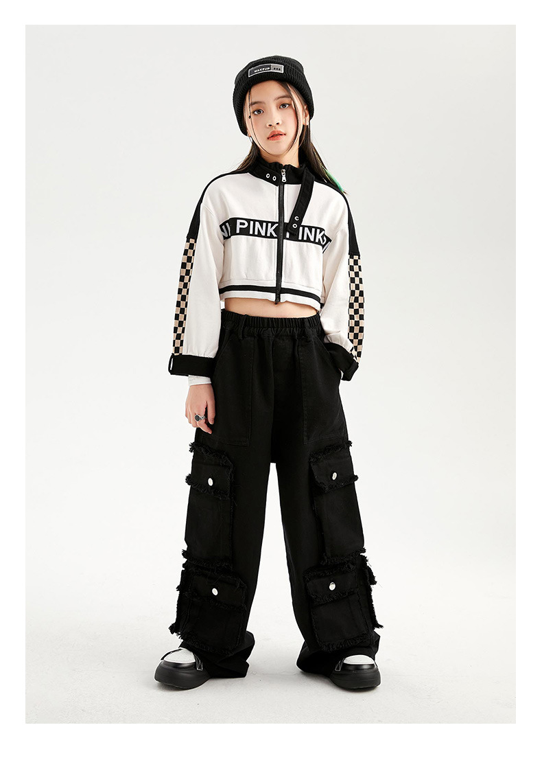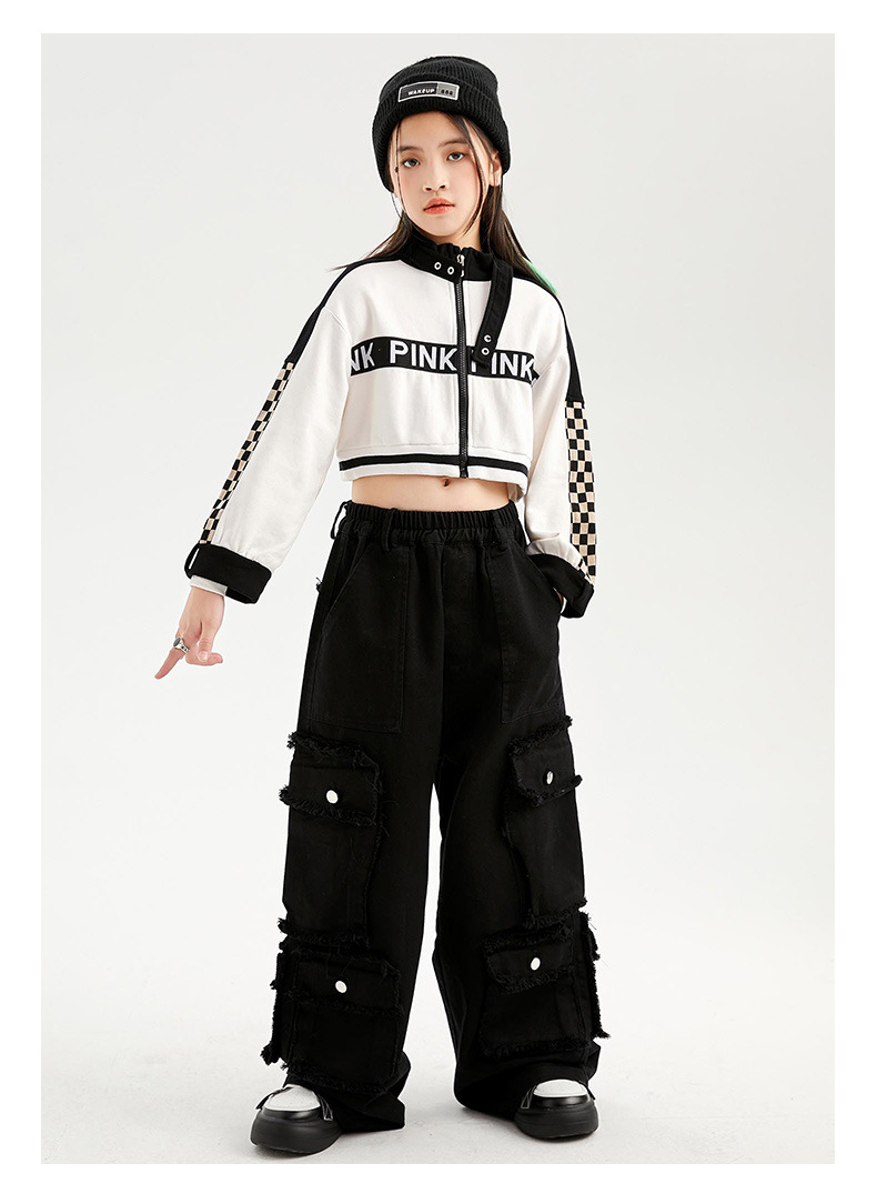 Укороченная куртка для девочек, свободные брюки-карго, Детская уличная одежда в стиле хип-хоп, женские комплекты, детское короткое джазовое пальто, наряды, костюмы