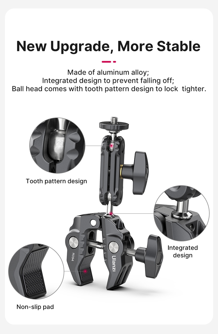 Изготовлен из алюминиевого сплава Интегрированная конструкция для предотвращения падения; Шаровая головка имеет дизайн с рисунком зубьев для более плотной фиксации