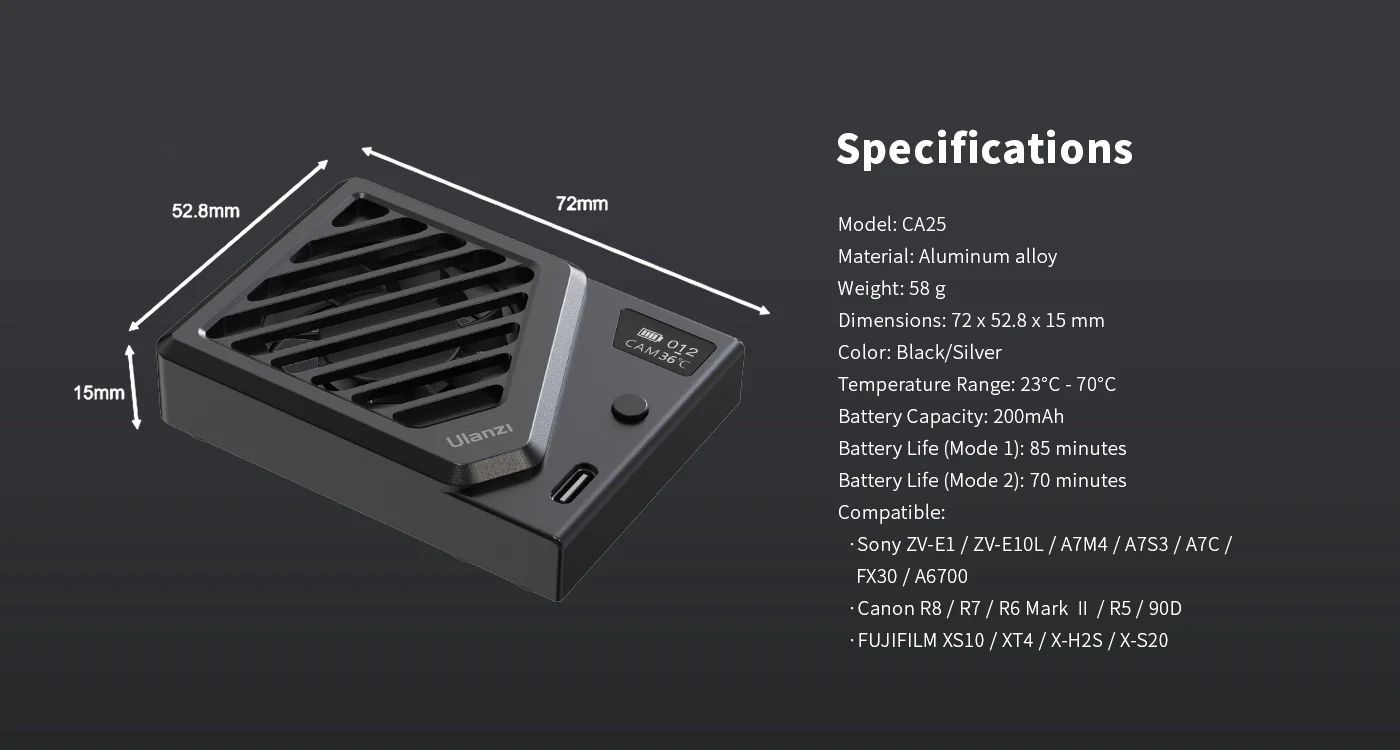 Ulanzi Вентилятор охлаждения камеры C072GBB1