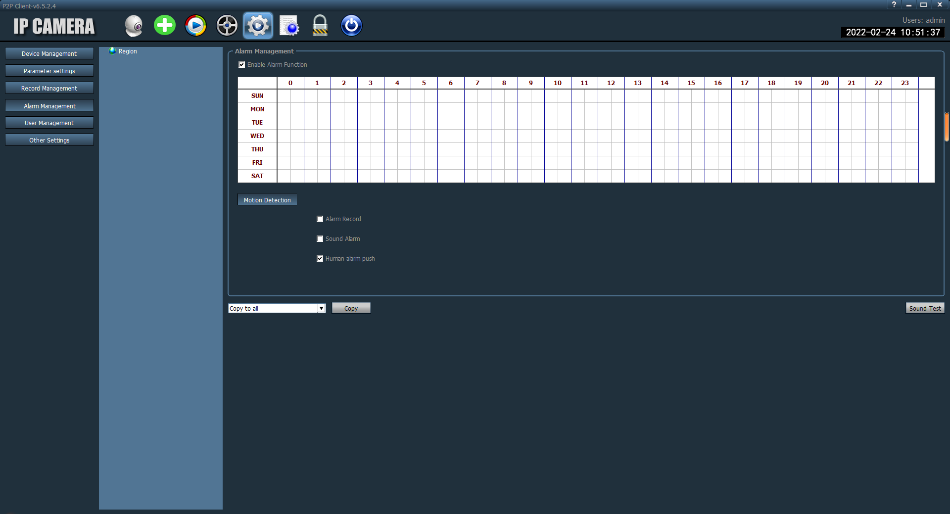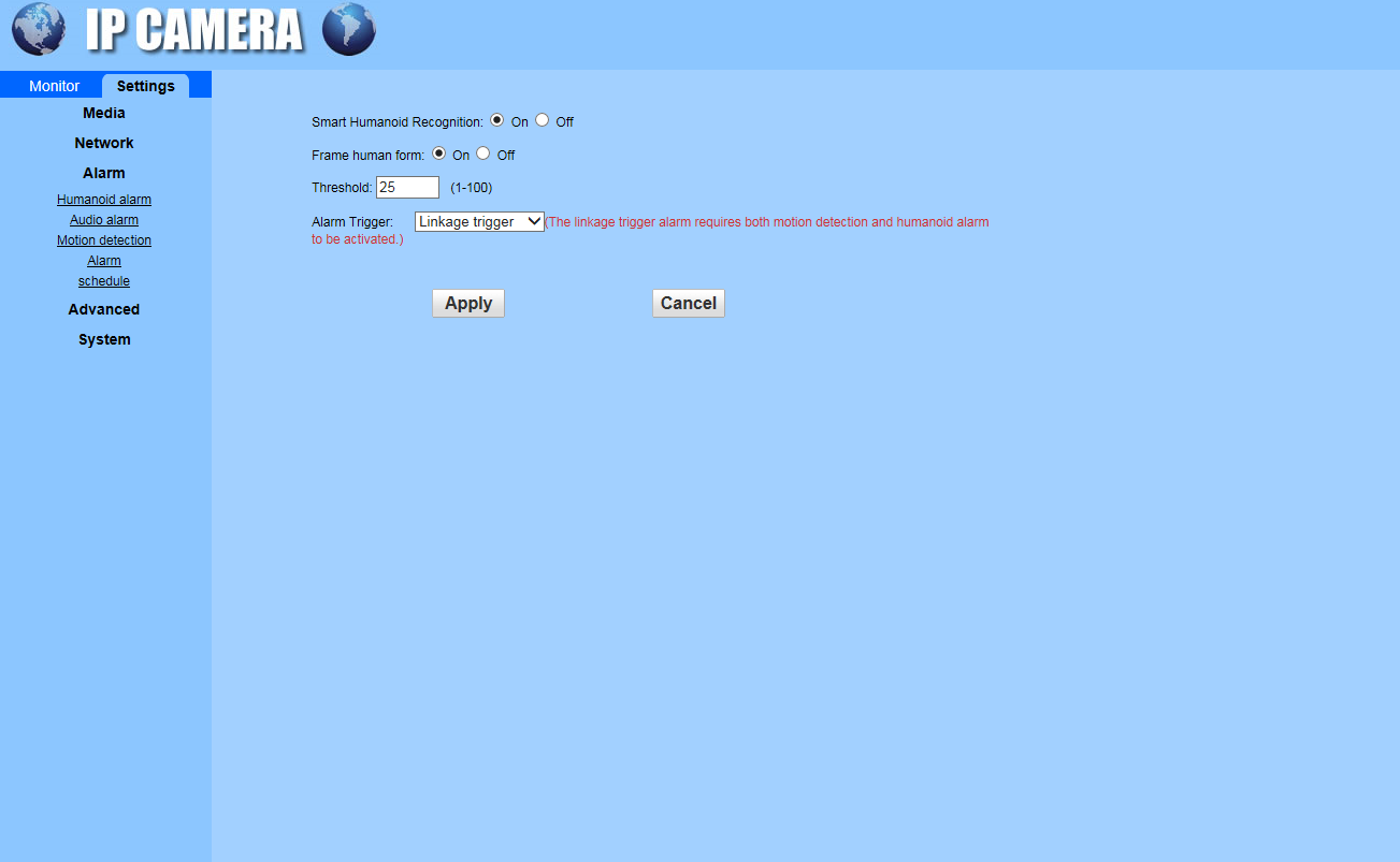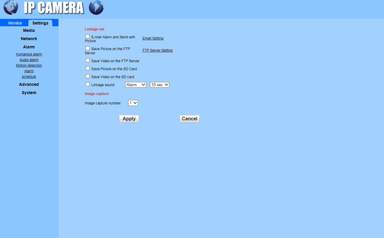 Управление сигнализацией (Обнаружение движения: запись по тревоге, запись звука, нажатие на сигнал тревоги человека)