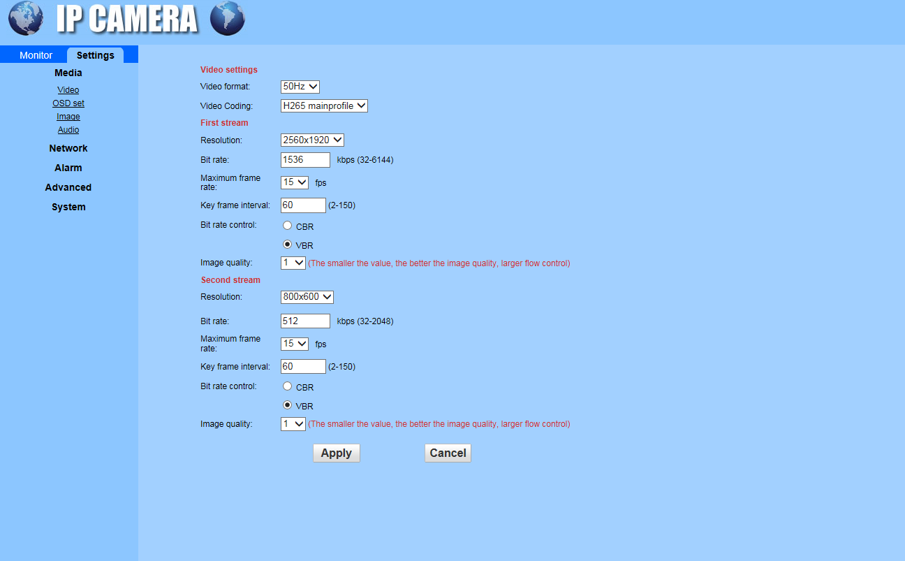 Основной поток: 2560x1920 @ 15 кадров в секунду, 2560x1440 @ 15 кадров в секунду