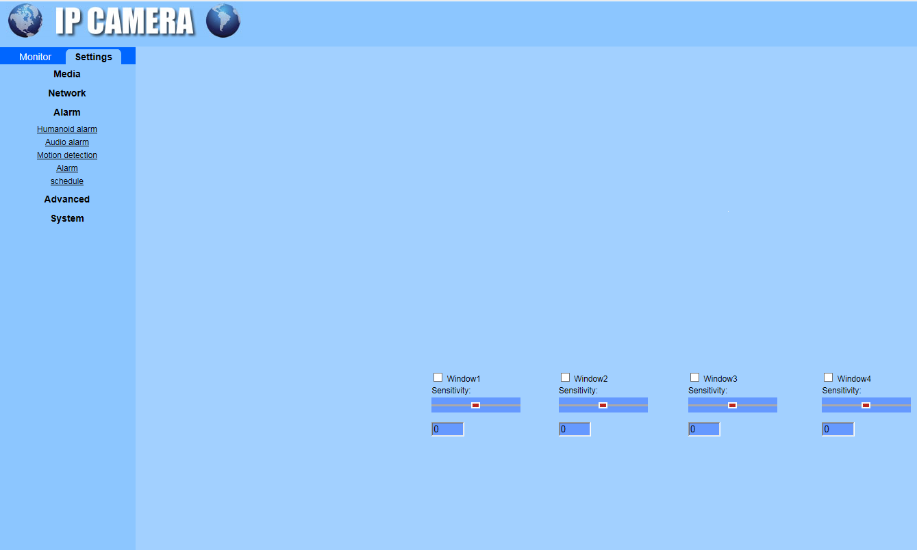 Можно установить 4 независимых области обнаружения (можно установить чувствительность 1-100)