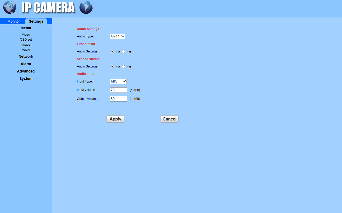 Дополнительный поток: 800x60/800x448 @ 25fps, 640x480/640x352 @ 25fps