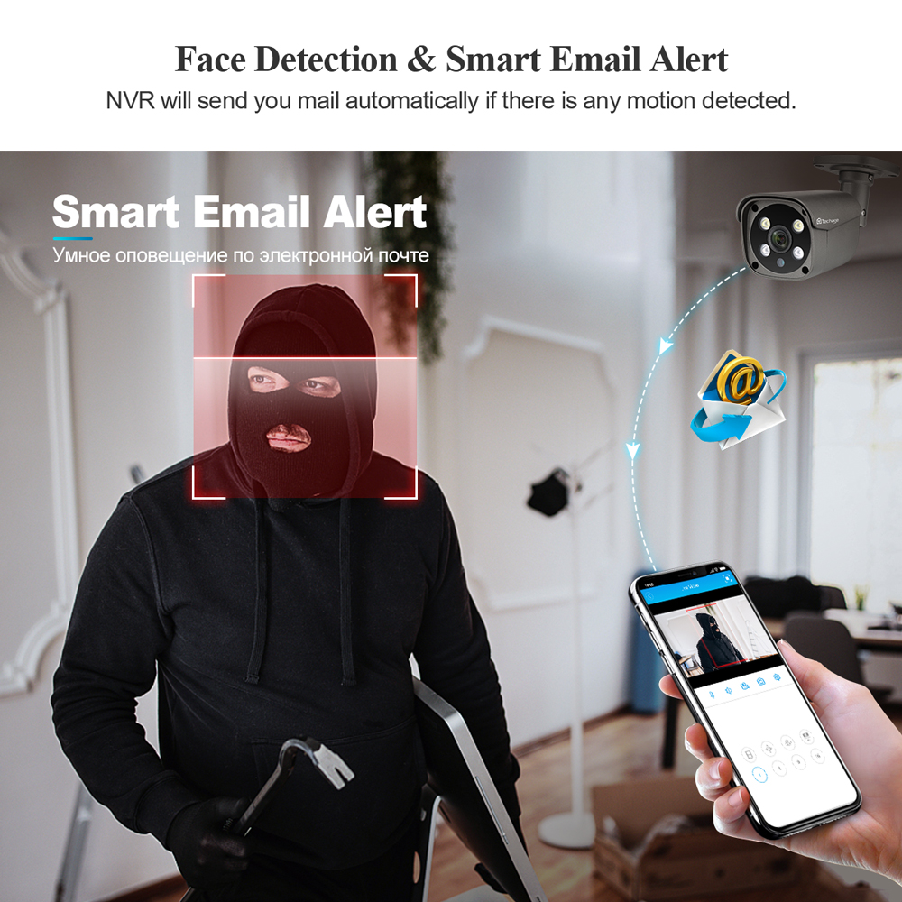 * Он поддерживает распознавание лиц, но его необходимо использовать с новейшим Techage POE NVR, чтобы отразить эту функцию, сетевой видеорегистратор других брендов может не отражать эту функцию.