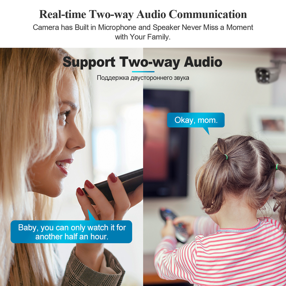 * Камеры имеют встроенный микрофон и динамик, поддерживают двустороннее аудио.