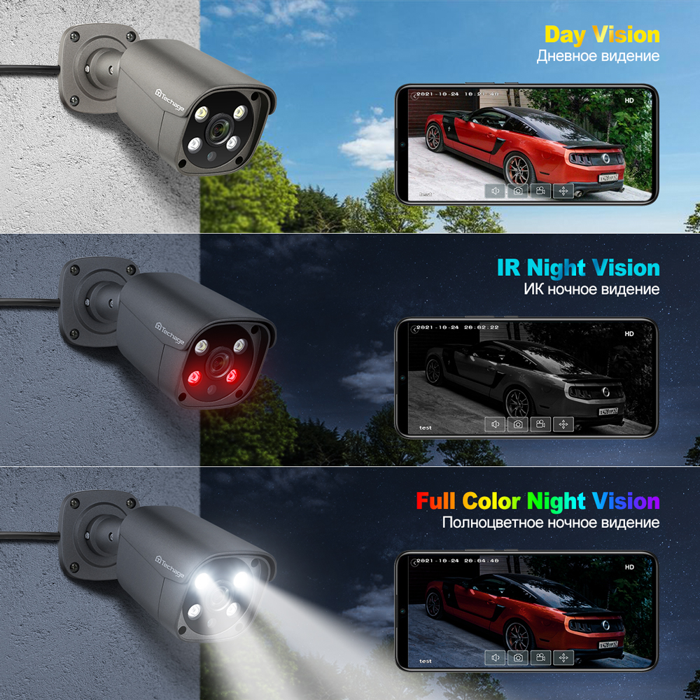 Уличная камера Techage H.265 Ultra HD 4K POE 8 Мп, IP-камера с распознаванием лица, цветным ночным видением, двухканальным аудио для системы видеонаблюдения