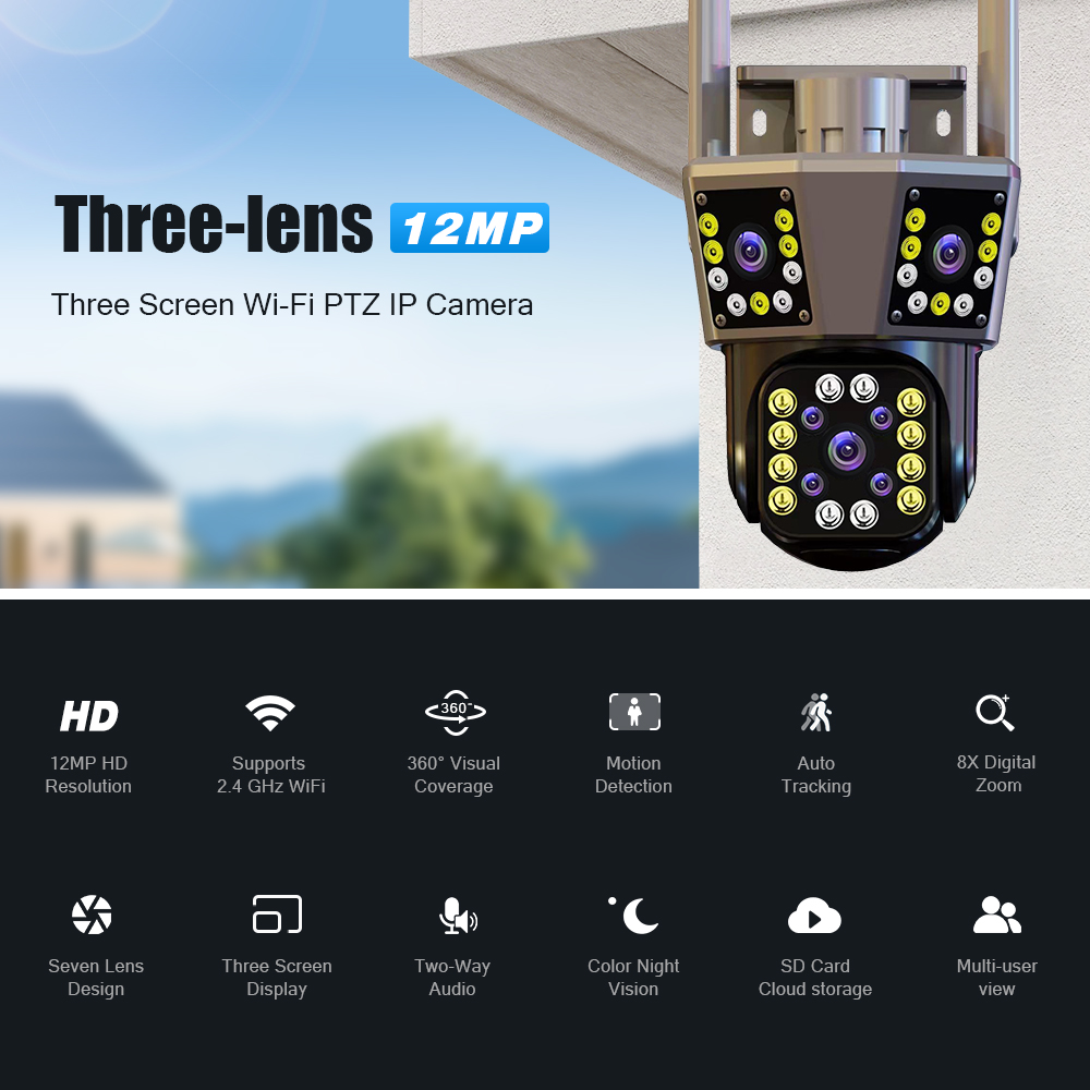 Уличная камера видеонаблюдения CANSITUM 12 Мп, 6K, Wi-Fi, PTZ