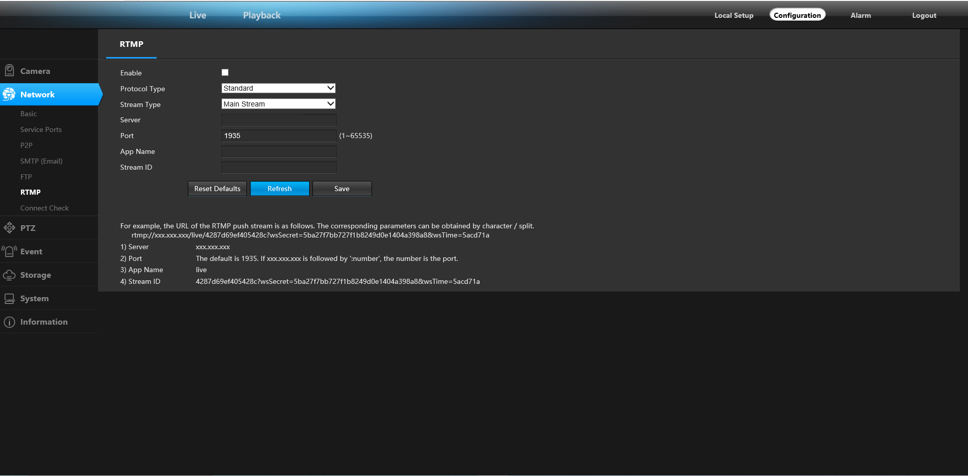 Поддержка ONVIF и Onvif Absolute Move, RTSP,RTMP,Hikvision и протоколов Dahua Поддержка FTP,SMTP(EMAIL)