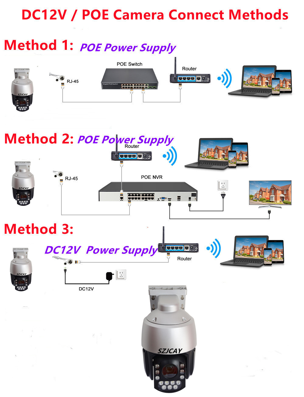 2. Камера POE: поддерживает функцию POE или источник питания DC12V