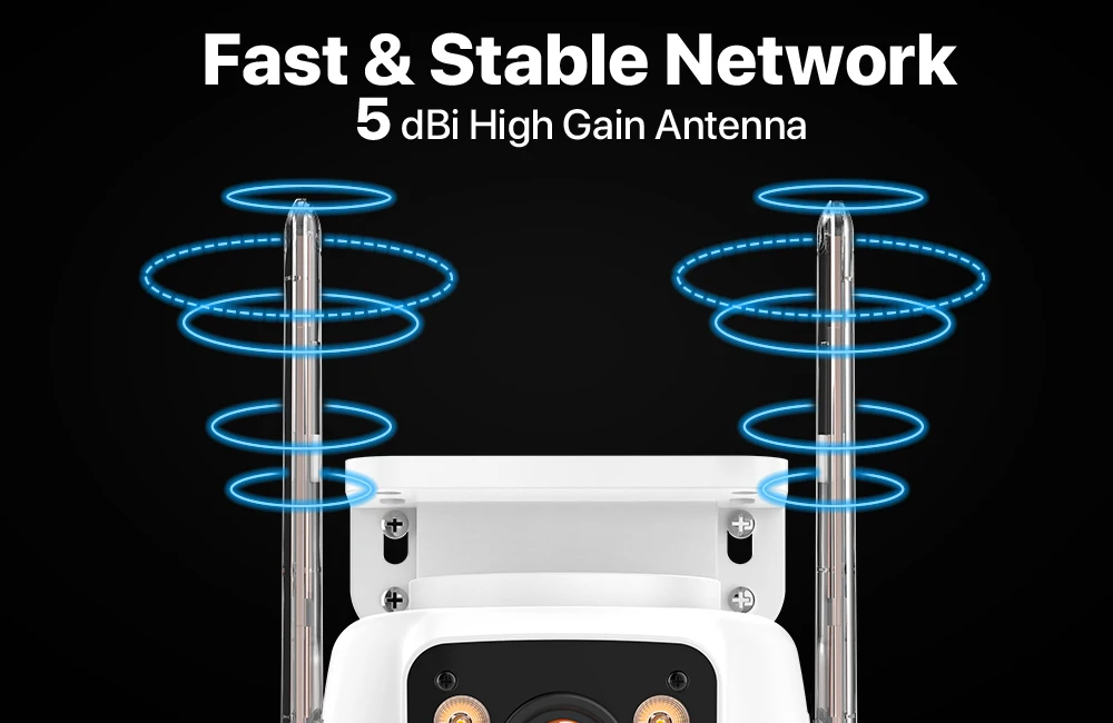 Оснащенная внешней антенной 5 дБи с высоким коэффициентом усиления, ваша камера может принимать более широкий диапазон сигналов.