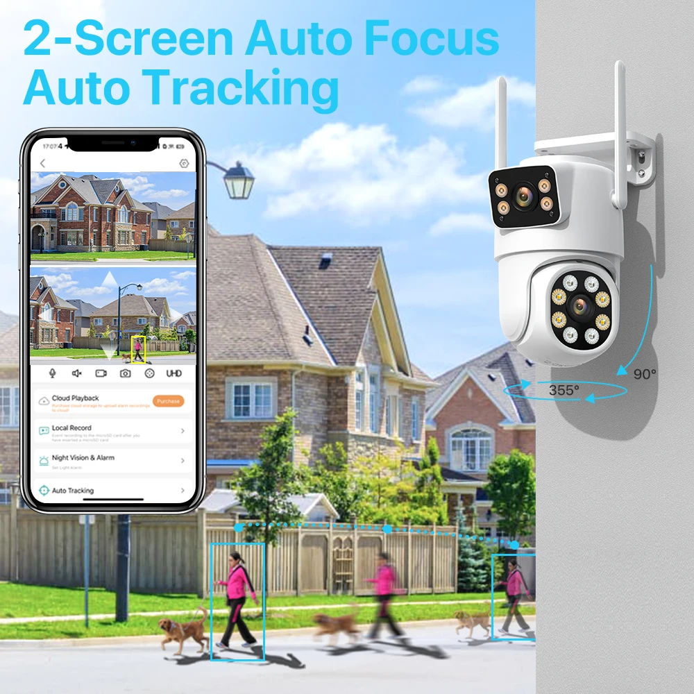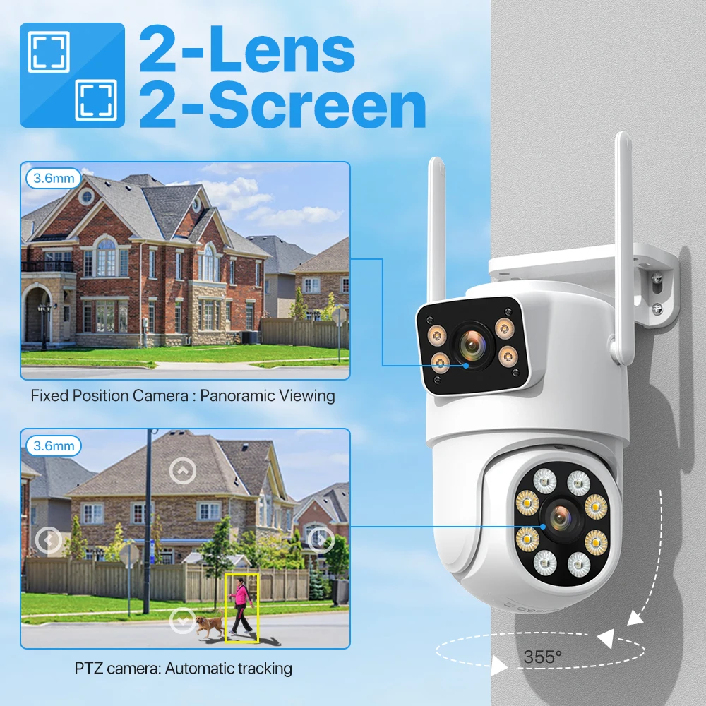 Уличная PTZ-камера с Wi-Fi, 8 Мп, 4K, двойной объектив, двойной экран, 4 МП, Беспроводная IP-камера HD, Onvif, камера видеонаблюдения с автоматическим отслеживанием, iCsee