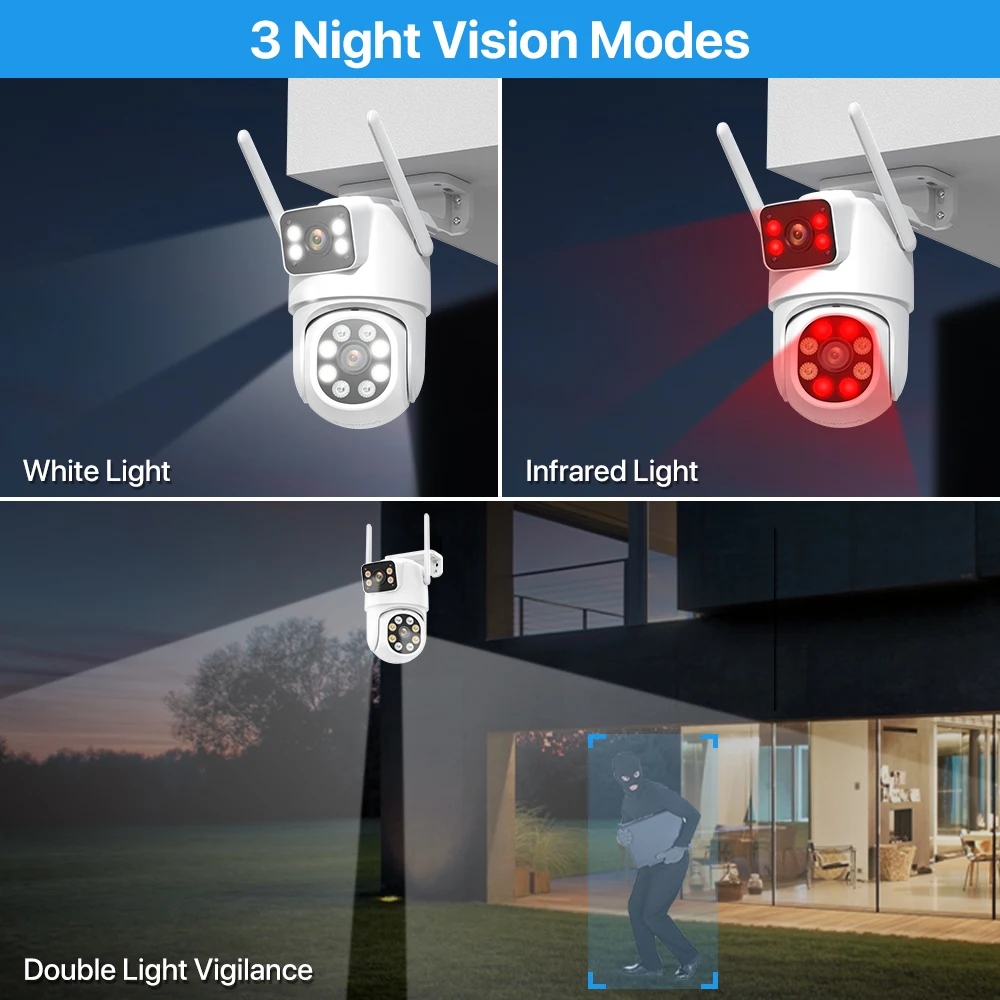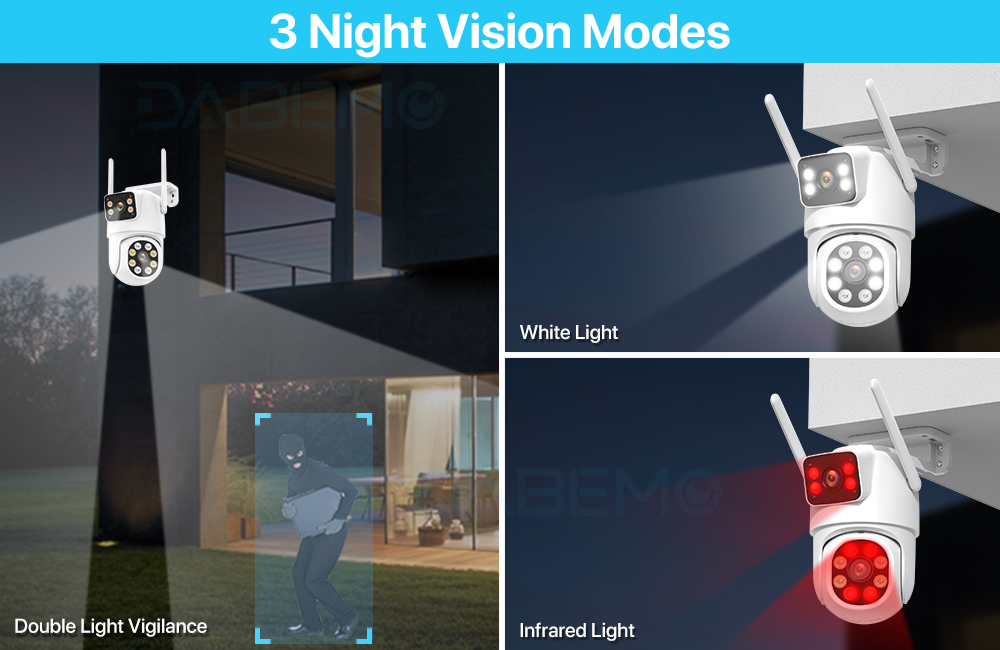 -Двойной светильник дизайн источника, встроенный инфракрасный светильник + белый светильник, инфракрасное ночное видение и полноцветное ночное видение;