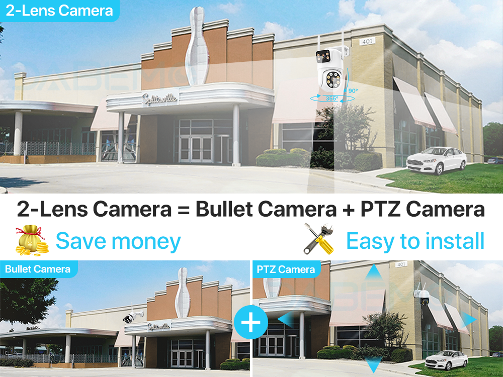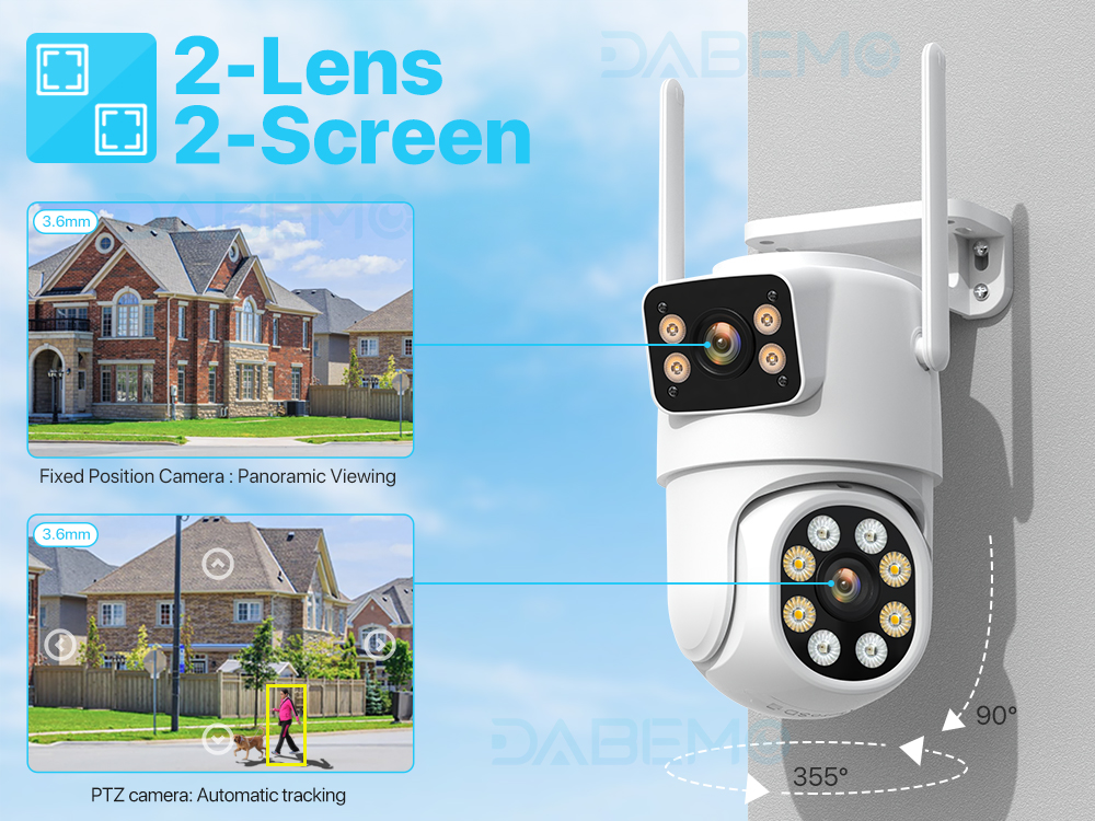 -Двойной экран с двумя датчиками и двумя объективами, широкоугольный Просмотр + Просмотр на большом расстоянии для достижения четкого мониторинга издалека и вблизи;