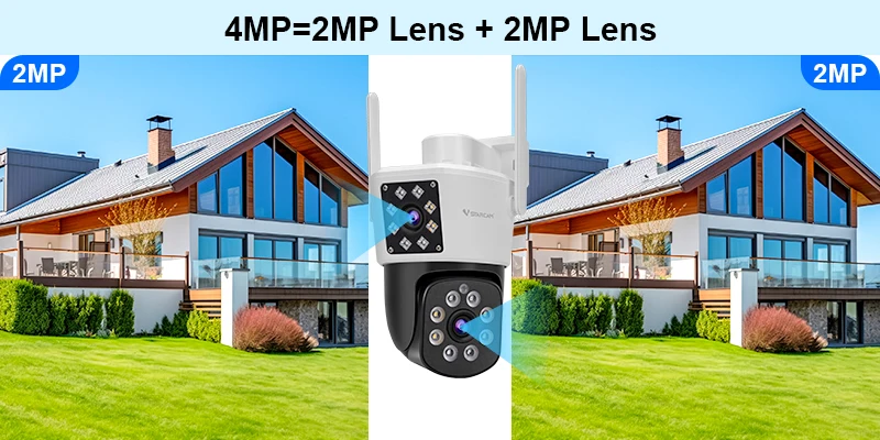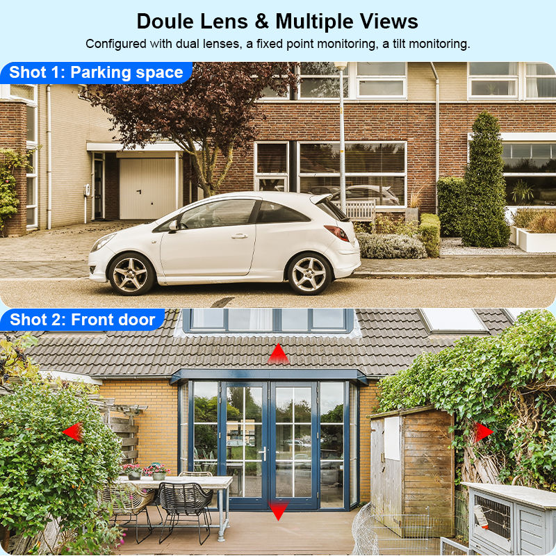 -Двойной объектив с двумя датчиками, двойной экран, широкоугольный обзор + Просмотр на большом расстоянии для достижения четкого мониторинга издалека и вблизи;