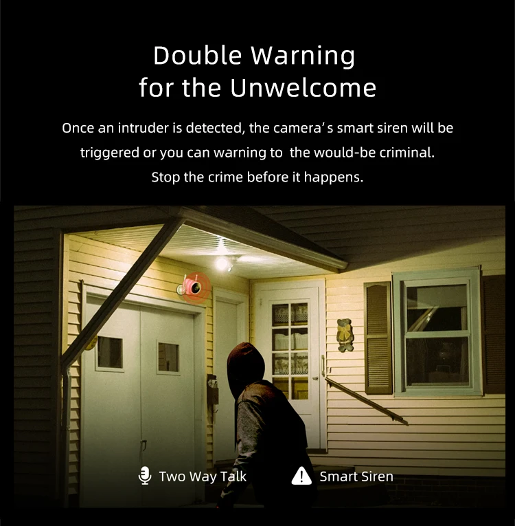 Прожектор/Обнаружение движения/Обнаружение человека/Отслеживание человека/Вспышка и сирена/2K Crystal Clear/360 ° Отслеживание человека/Цветное ночное видение/Обнаружение ключевой области/Зона активности/Мгновенное уведомление/Wi-Fi & Подключение к локальной сети;