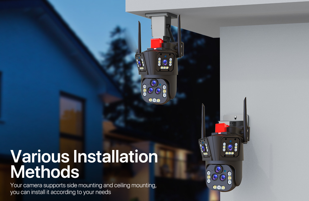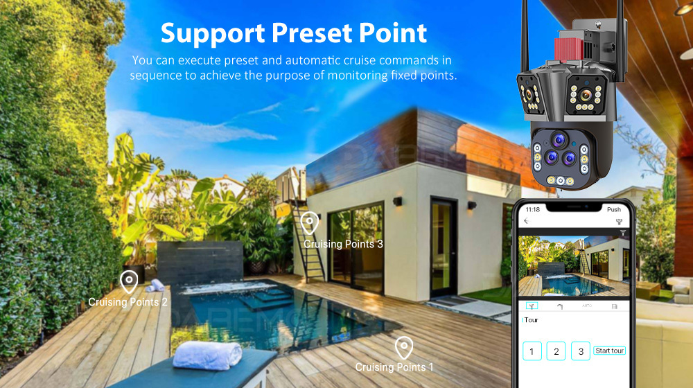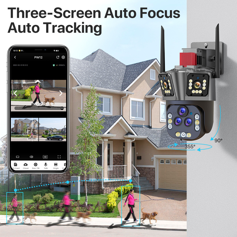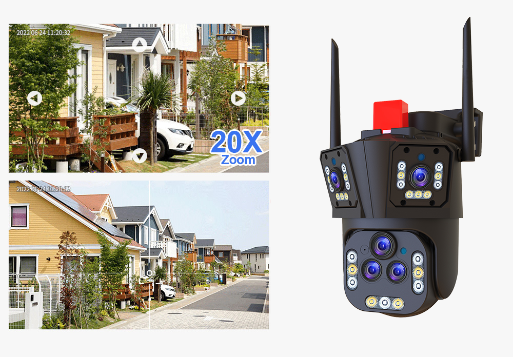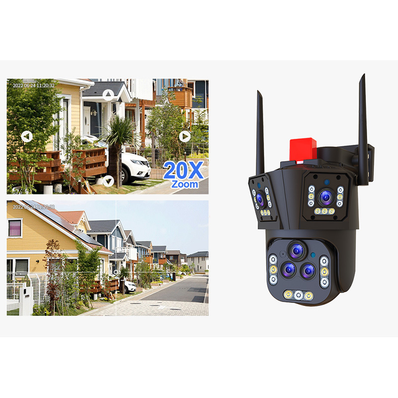 • Четыре объектива и три экрана, сверхширокоугольный + 20-кратный зум для достижения четкого мониторинга вблизи и вдали.