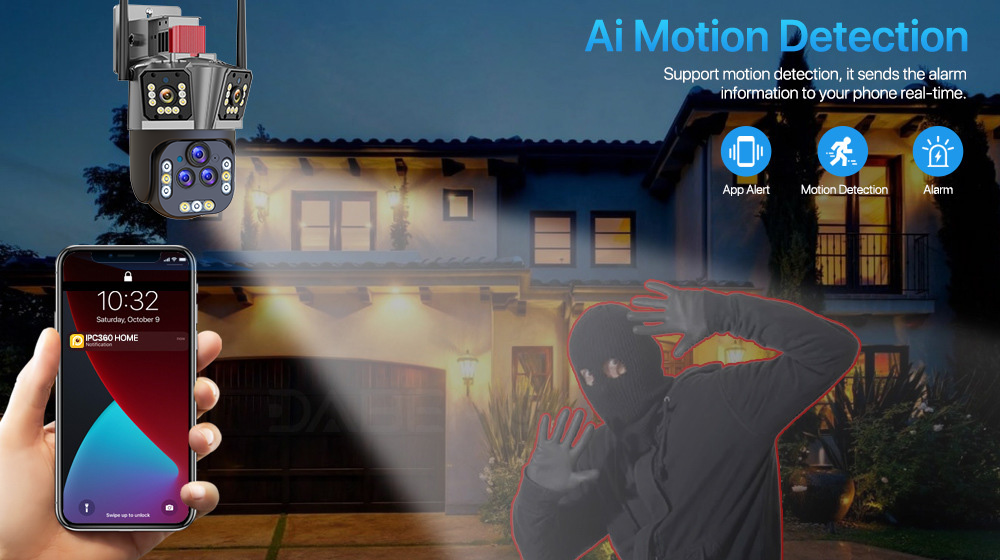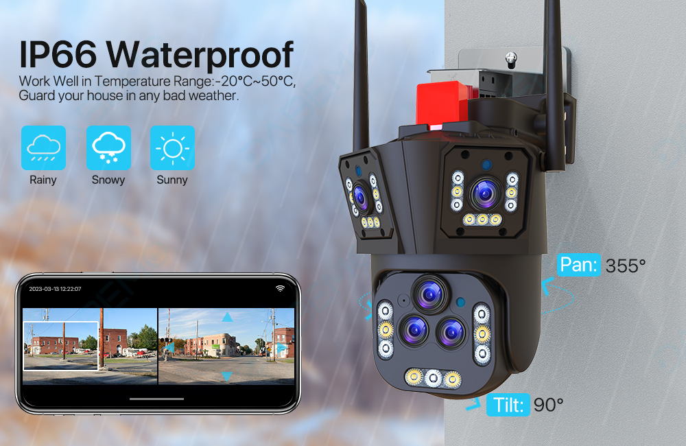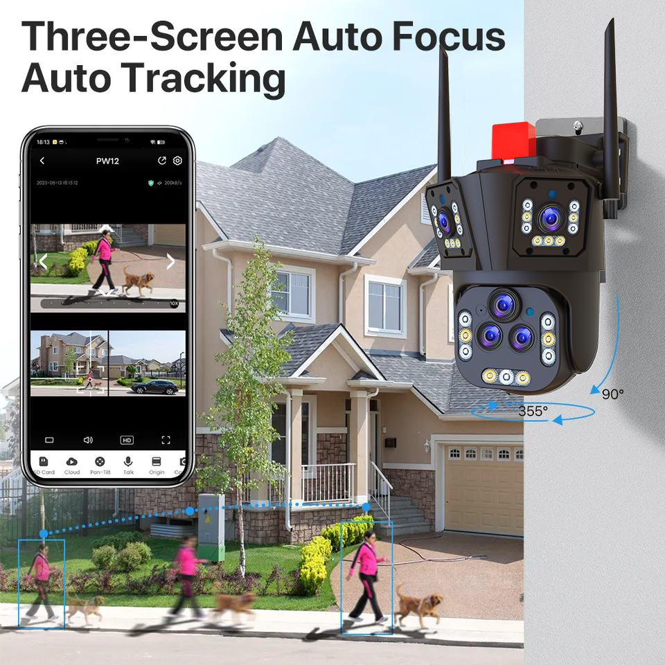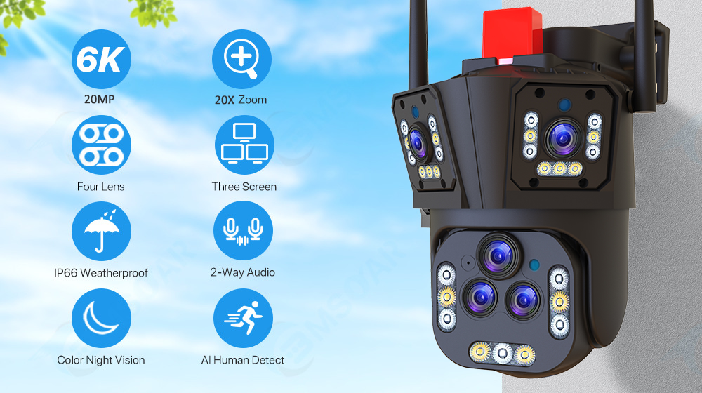 Saikiot 20MP 8K 20X Zoom Наружная камера WIFI 5 линз 360 Водонепроницаемая сигнализация WIFI Беспроводная Домашняя безопасность PTZ WIFI камера