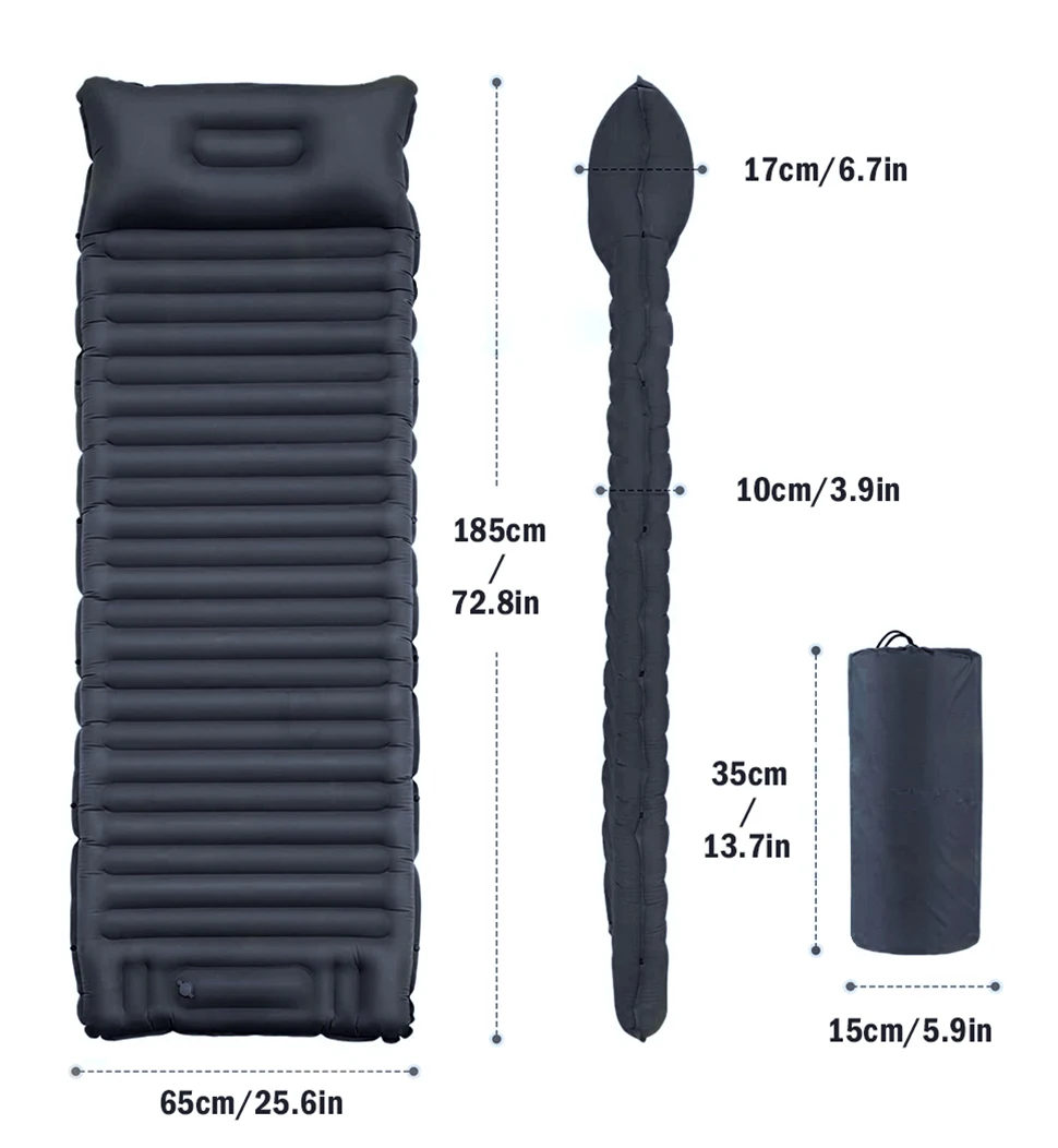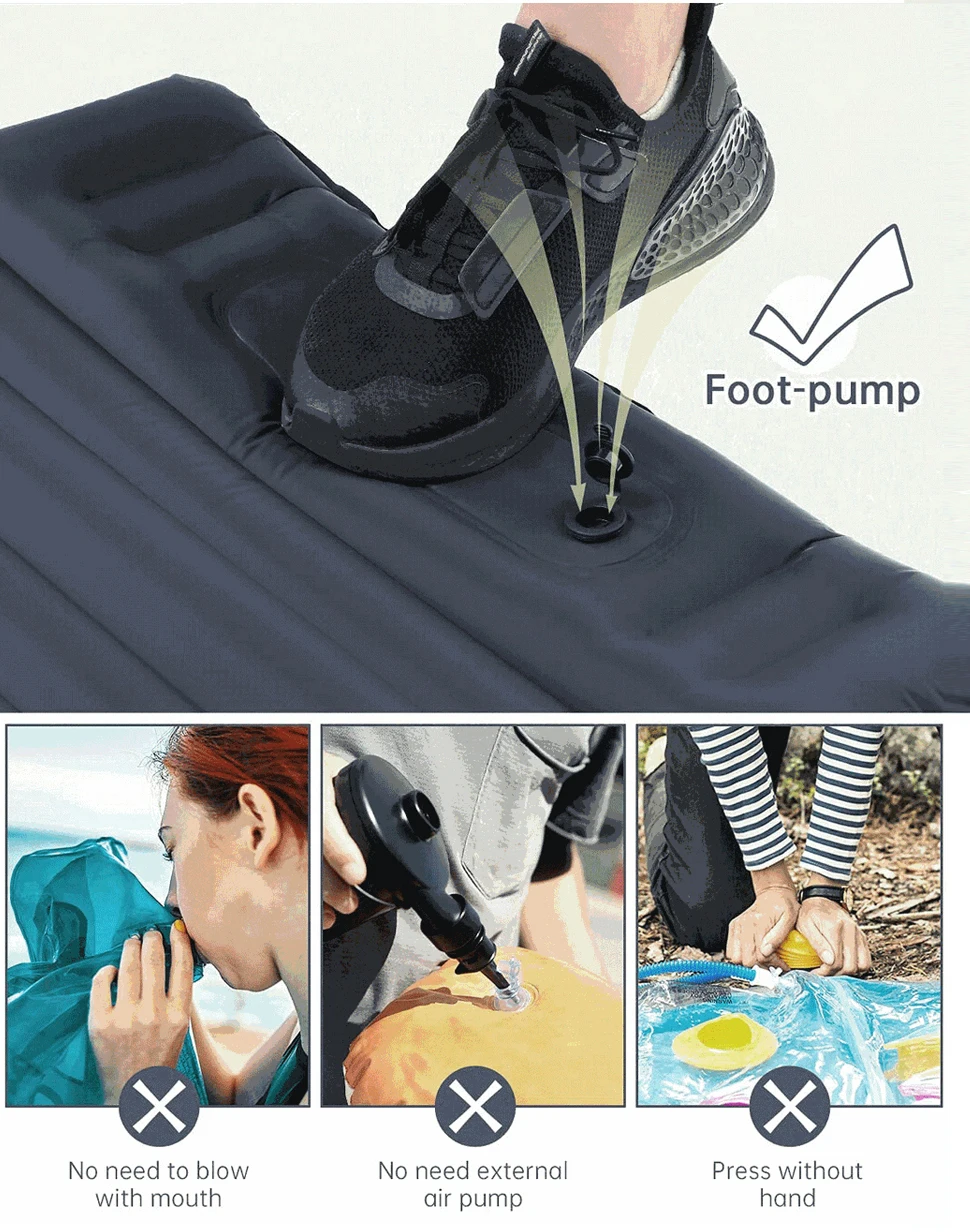 Уличный сверхлегкий спальный матрас, утолщенный надувной матрас с подушкой, складная воздушная подушка со встроенным насосом для путешествий