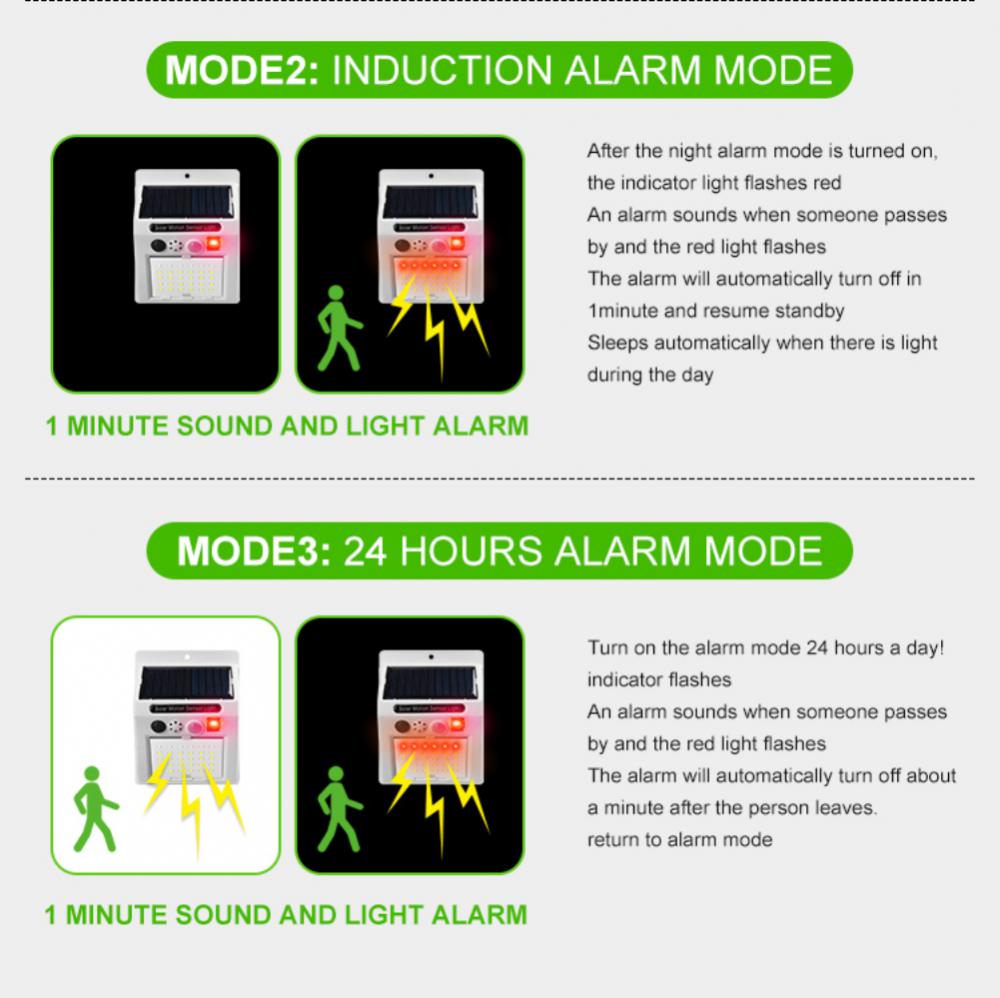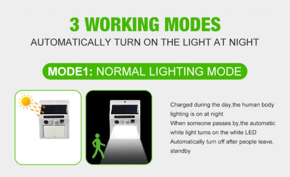 -Автоматическое включение: датчик движения PIR может сканировать источник тепла, который непрерывно перемещается в пределах диапазона обнаружения. Когда кто-то появится в области, светильник автоматически включится.