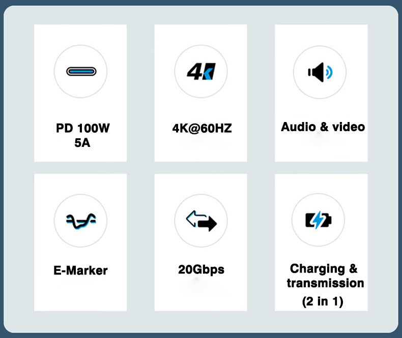 Скорость передачи:20Gbps Поддержка 4K @ 60 Гц аудио и видеовыход