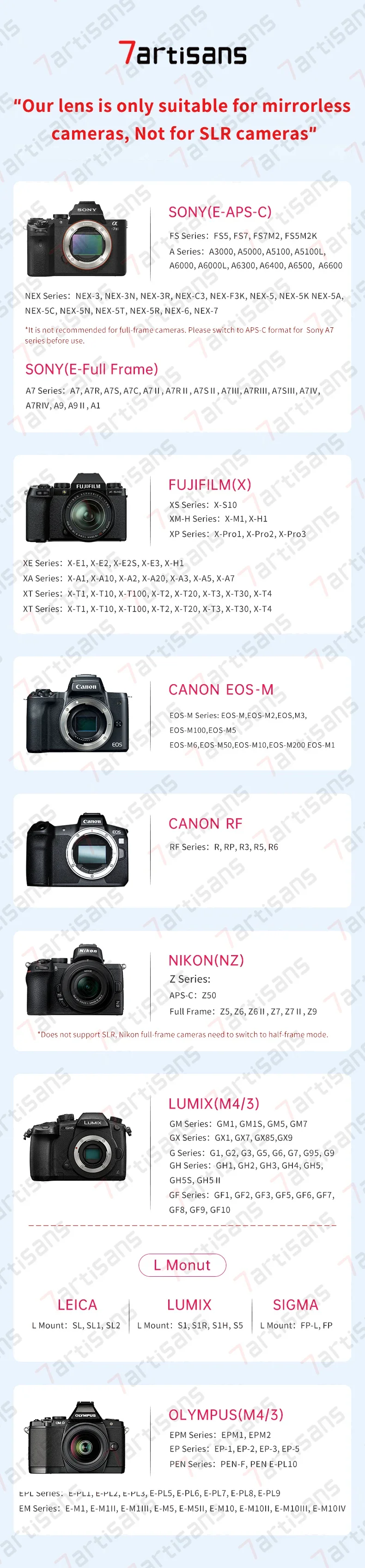 Ультраширокоугольный объектив беззеркальный «рыбий глаз» 7artisans 7,5 мм F2.8 II для Sony E Fuji XF Nikon Z Micro M4/3 Canon EOS-M M50 Canon RF