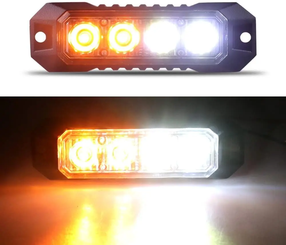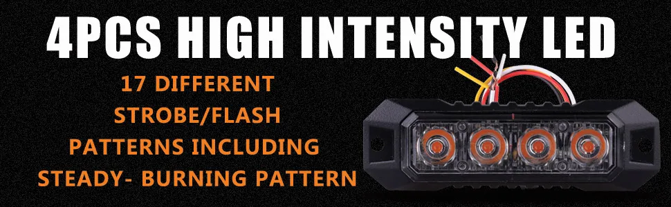 【Высокая яркость】 Каждая единица аварийного освещения стробоскопа для транспортных средств имеет 4 янтарных светодиодных чипа высокой интенсивности и высокой яркости, прозрачные линзы для более ярких цветов. Супер видимый даже днем.